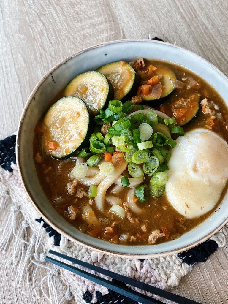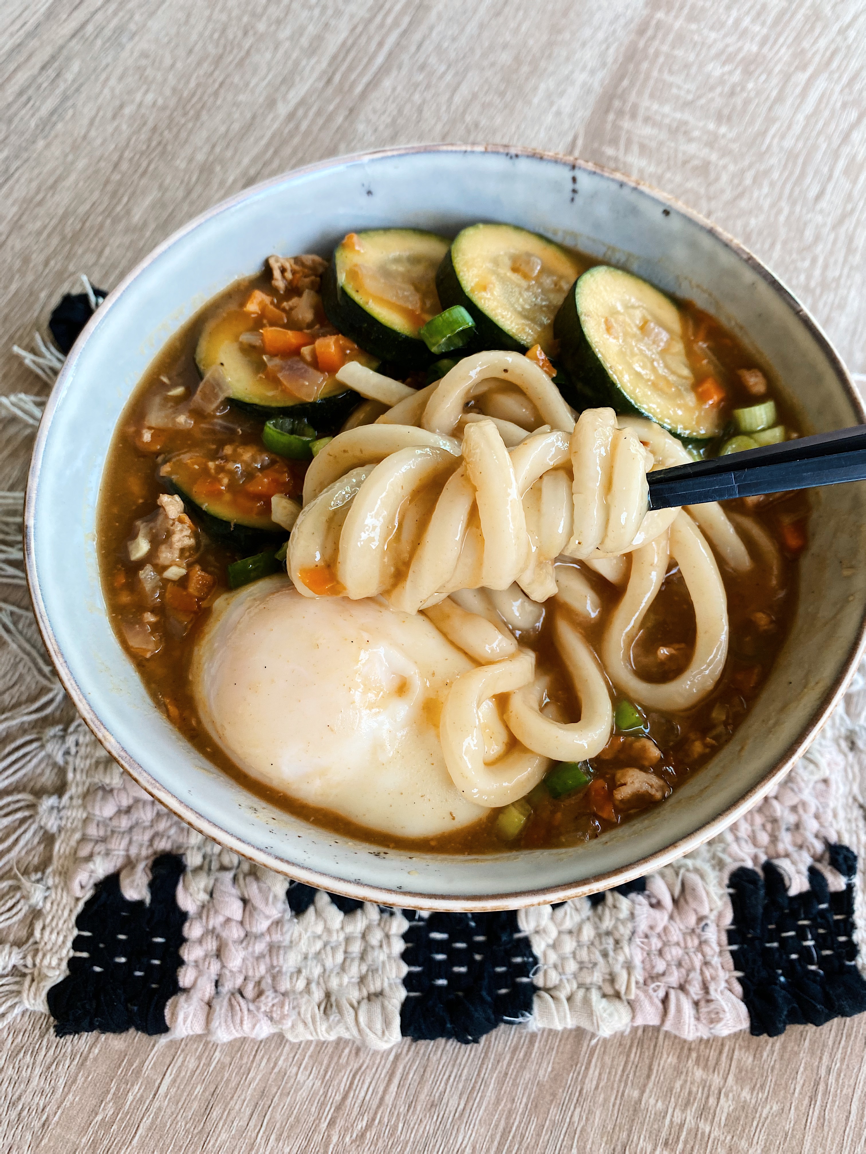 咖哩真的是一個零出錯的料理,以前做咖哩大多是配白飯,這次剛好去了趟日本超市買了讚岐烏龍麵,就做成咖哩烏龍麵,圖片可以看出麵條超級Q彈好吃!!一定還會再回購 ♥ ♥(烏龍麵不宜煮太久,一下就撈起才有Q彈口感)
