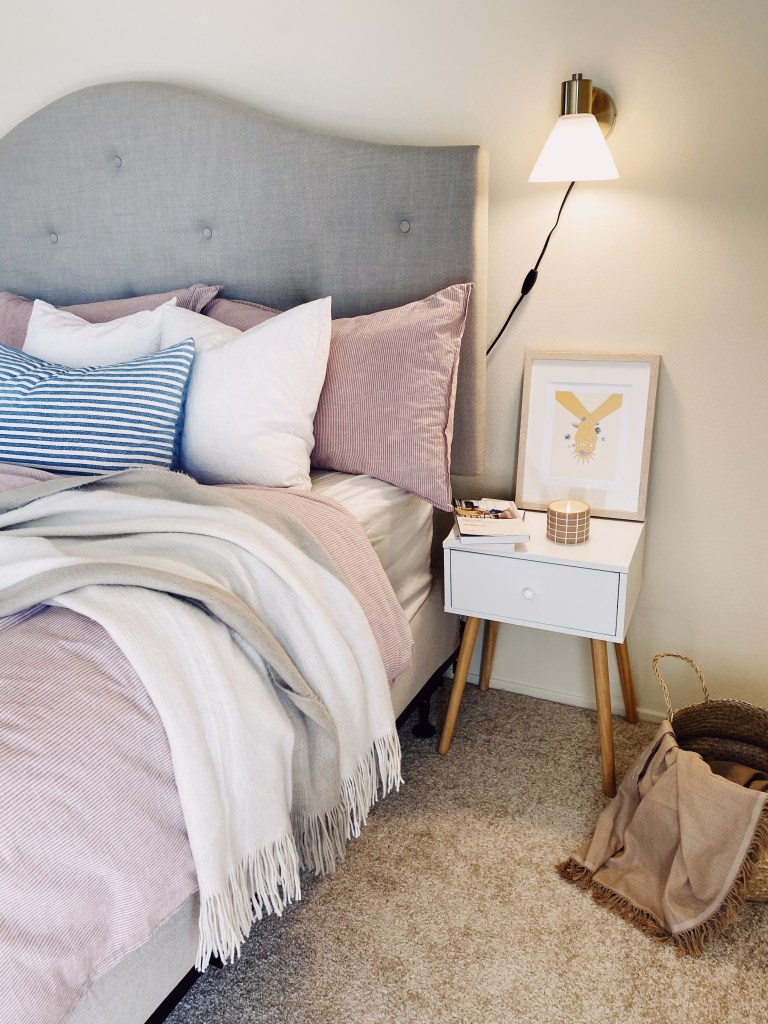 DECORATION臥室 ❘ 𝐷𝐸𝐶𝑂𝑅𝐴𝑇𝐼𝑂𝑁 【 臥 室】♥ ♥床是我們搬進新家的第一個傢俱,還記得當時在組”king size”的大床時我正在翻高燒,在畏寒嚴重的情況下也急著要把床組好(有組過ikea床的人應該都知道,要從底部的床架➔headboard ➔床墊,每一個環節都要自己組裝) 最後整體佈置起來我們都很喜歡,色系是以米色和淺粉色為主,nightstand上擺的是在urban outfitters 買的畫和蠟燭~這組Nightstand 兩個才不到$60,cp值很高(在amazon買的,但也是要自己組裝) 𝐸𝑚𝑚𝑎 分享此文: 按一下即可分享至 X(在新視窗中開啟) X 按一下以分享至 Facebook(在新視窗中開啟) Facebook 喜歡 正在載入... 相關