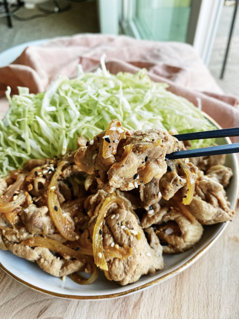 在日本超市買的肉片每次都讓我好放心,乾凈衛生、肉質好、吃起來就是特別好吃,我這次用豬里肌肉片做燒肉,整個過程含切高麗菜絲不到15分鐘完成,快速料理無誤!