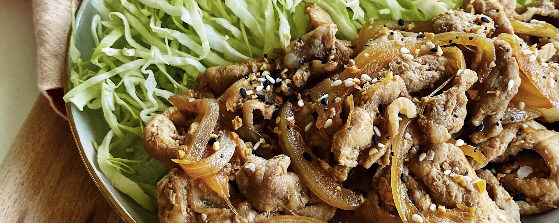 在日本超市買的肉片每次都讓我好放心,乾凈衛生、肉質好、吃起來就是特別好吃,我這次用豬里肌肉片做燒肉,整個過程含切高麗菜絲不到15分鐘完成,快速料理無誤!
