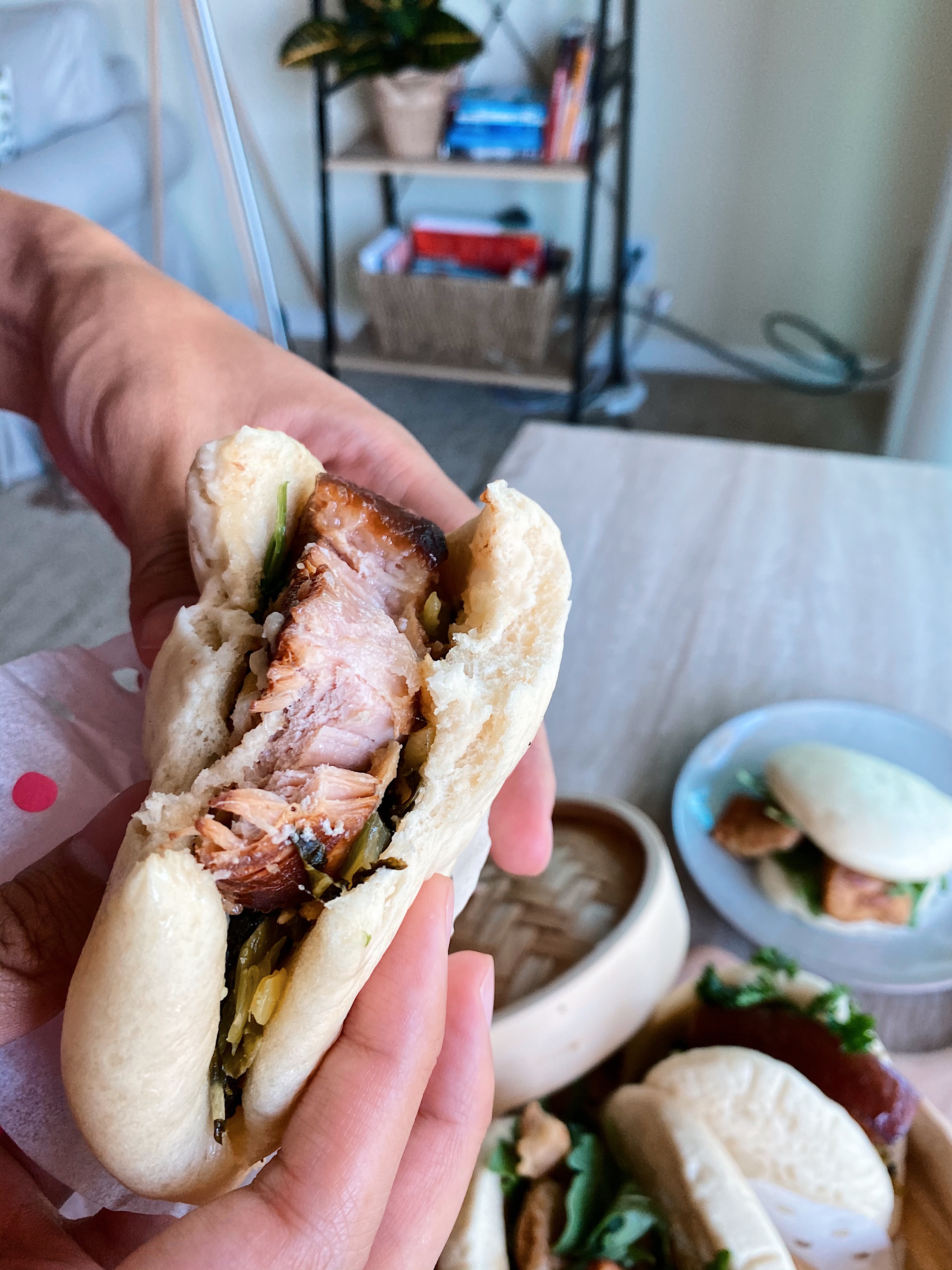 上次吃刈包是在通化夜市的X家刈包(我很愛通化夜市,常常想食譜都是從這邊做聯想)半熟半肥的滷肉加上滿滿的花生粉和酸菜,每次經過都一定會買一份。刈包大部分的人聯想到就是夾滷肉+香菜(五花肉)但我對香菜真的沒輒⋯所以就改用巴西里取代,巴西里葉的淡淡清香一樣很有解膩的效果哦!