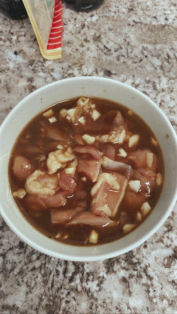 雞胸肉切塊(圖5)拿一個碗放入一顆雞蛋、砂糖、米酒、醬油、大量蒜泥、白胡椒粉抓醃放至冰箱一晚入味(圖7)。