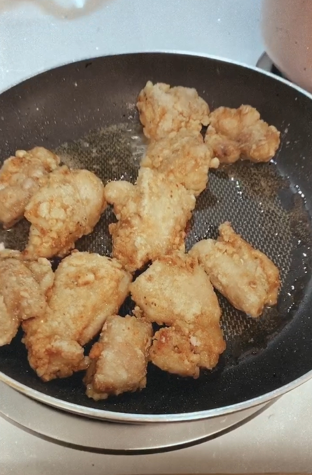 ✔ 醬汁裹炸雞的步驟一定要快+熄火,才能維持住炸雞表皮的脆度!下午小點心快速就可以上桌