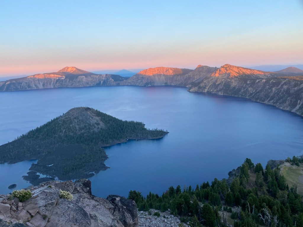這次的國家公園來到了Oregon州的Crater Lake National Park,開車真的超遠(輪流駕駛的大家辛苦了)crater lake 的美完全不用任何濾鏡就可以呈現出了(白天黃昏都好美,請看下圖)