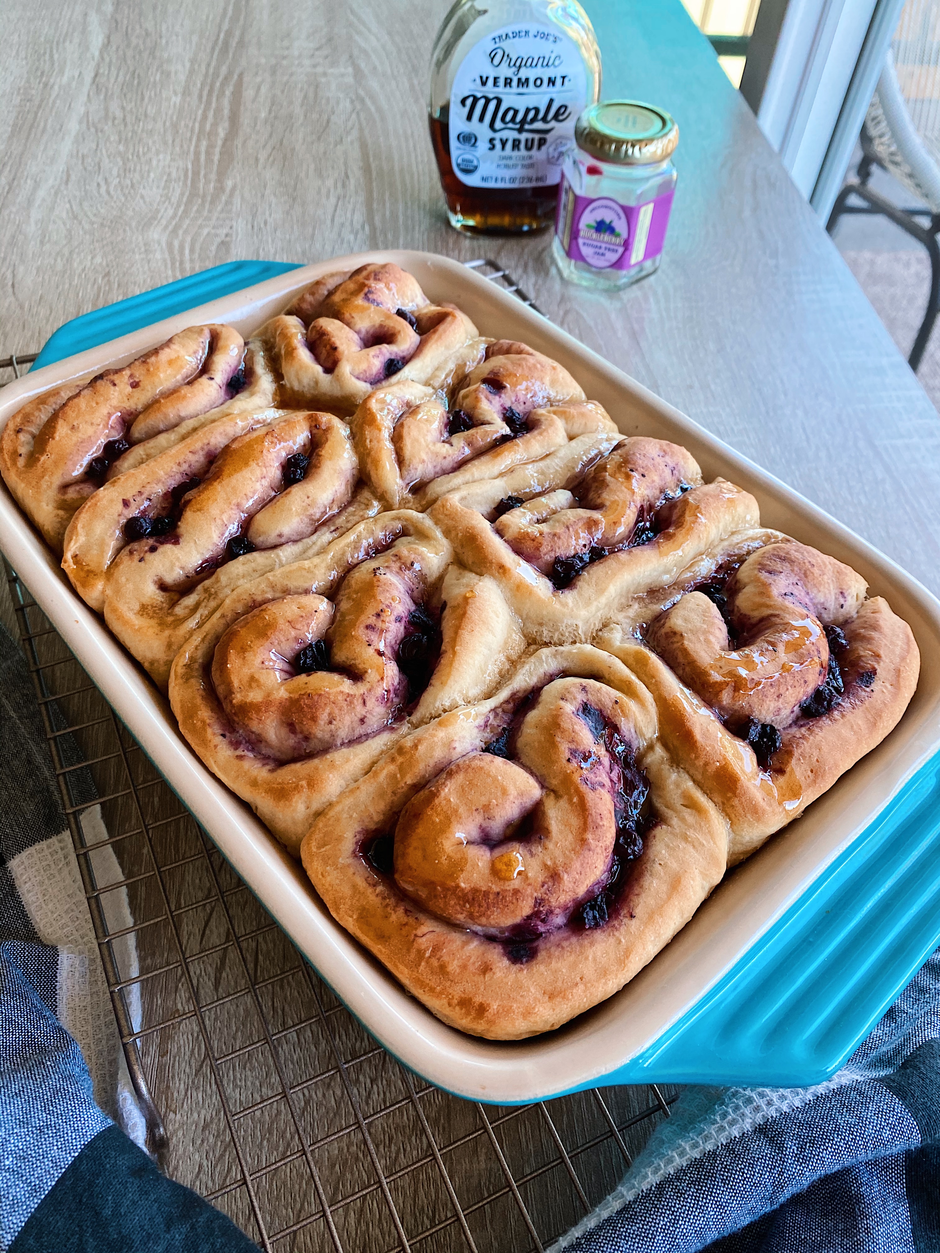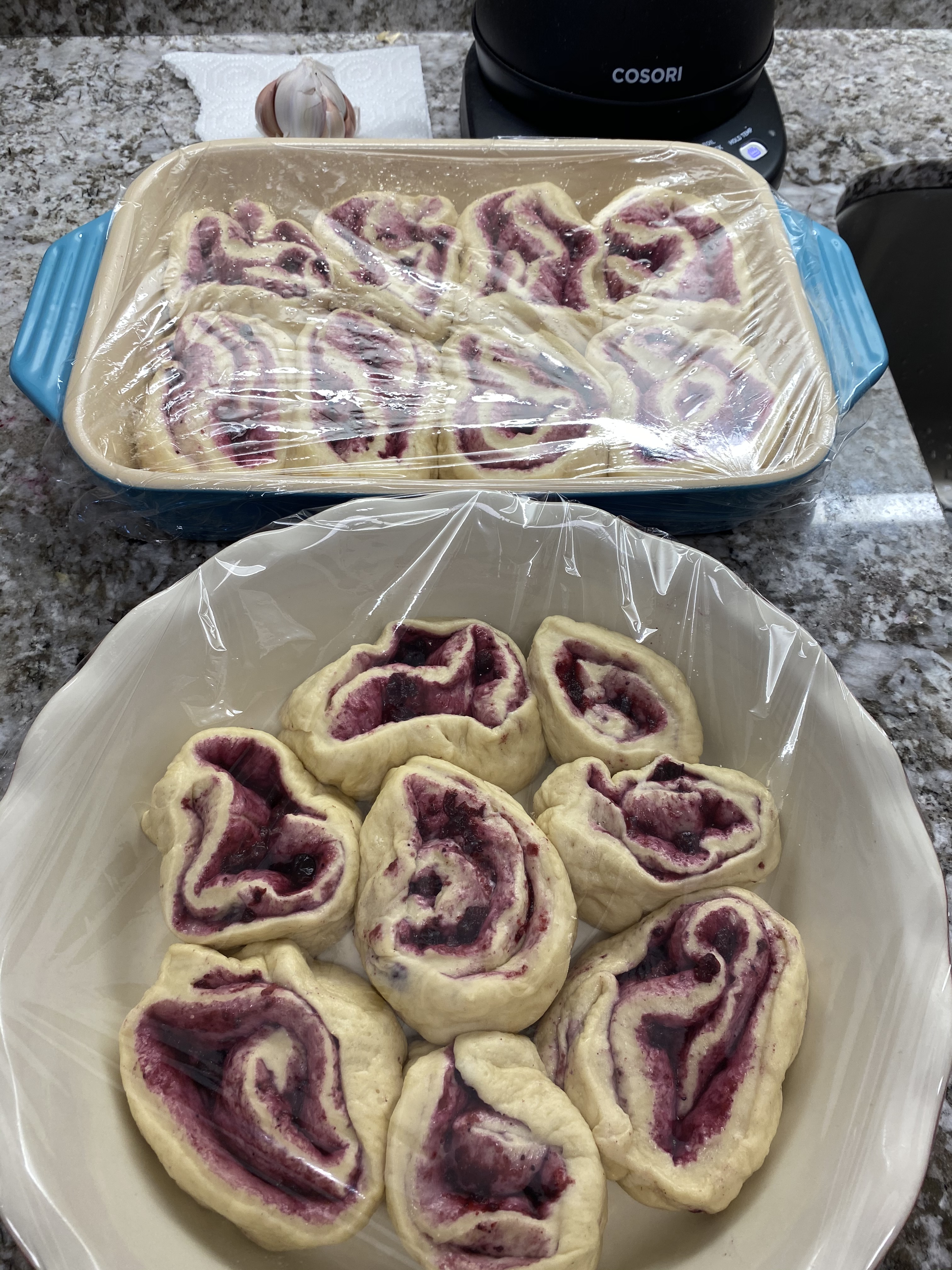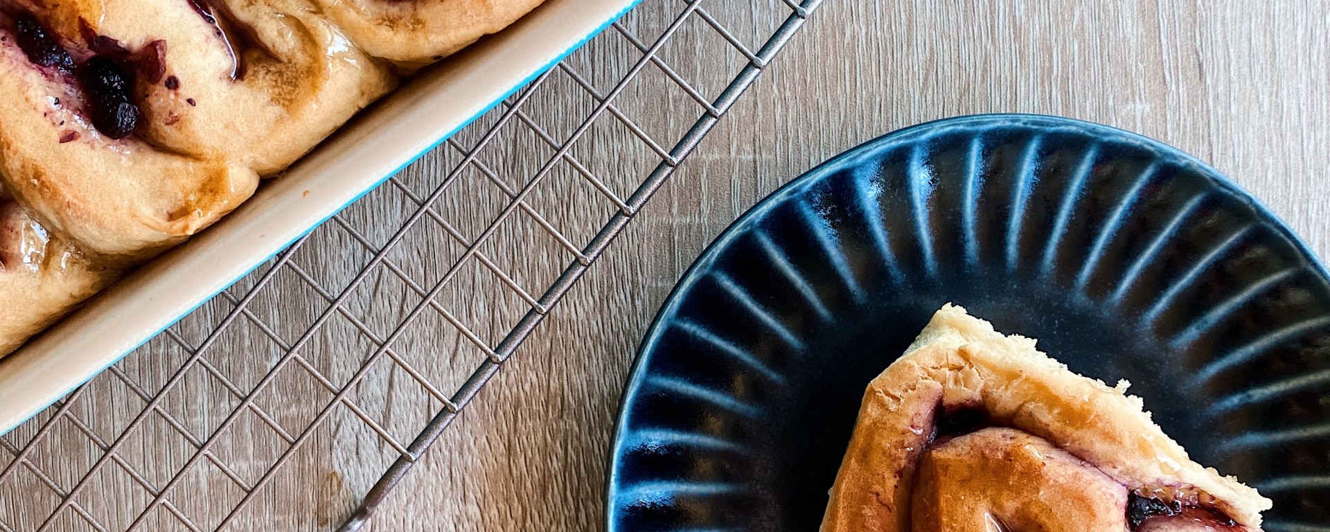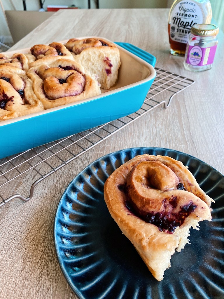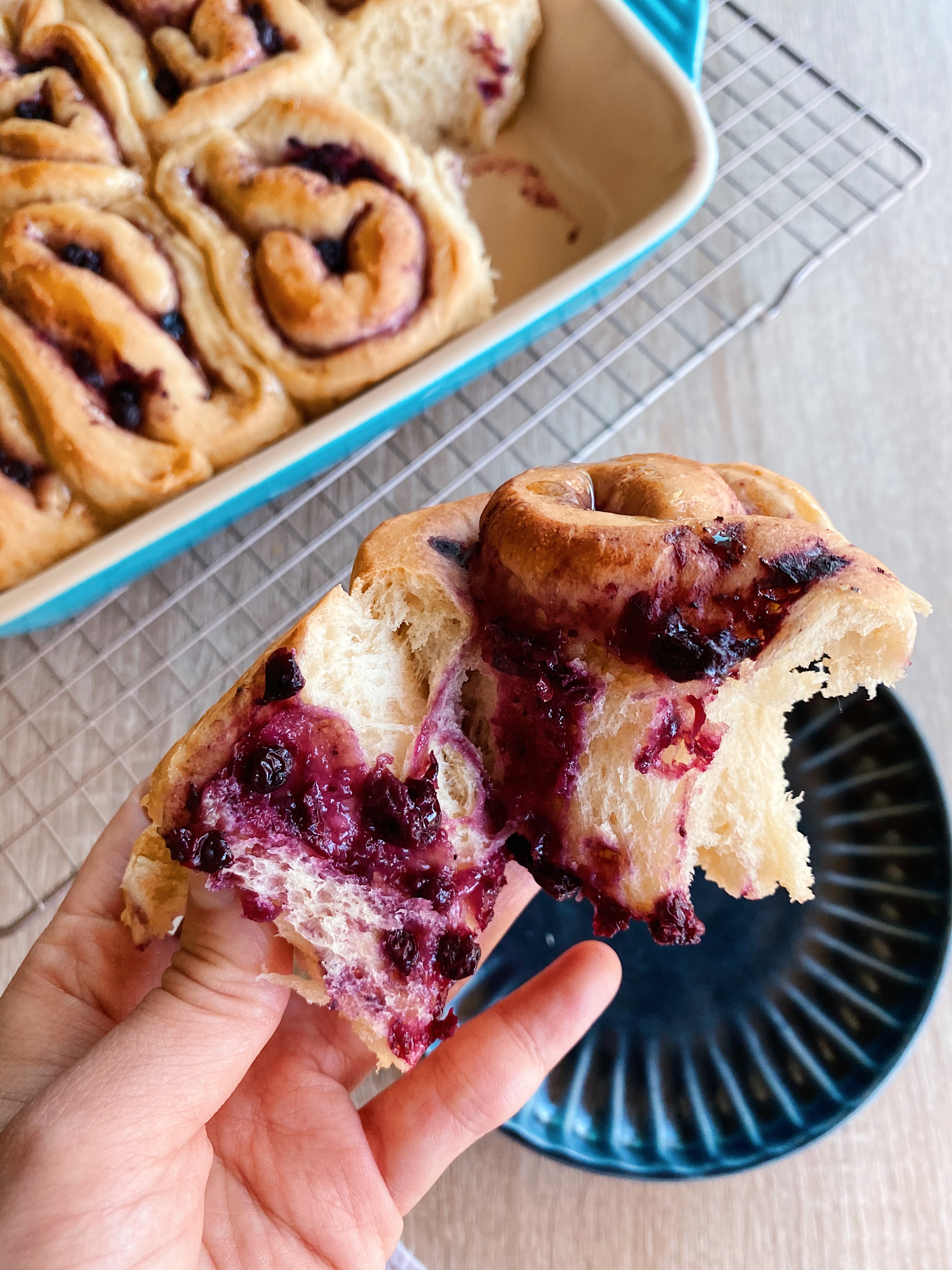 本來想直接買吐司抹醬來吃最簡單,但還是手癢+想試試做點有趣的變化,就做了很像肉桂捲的【💜 Huckleberry捲】!