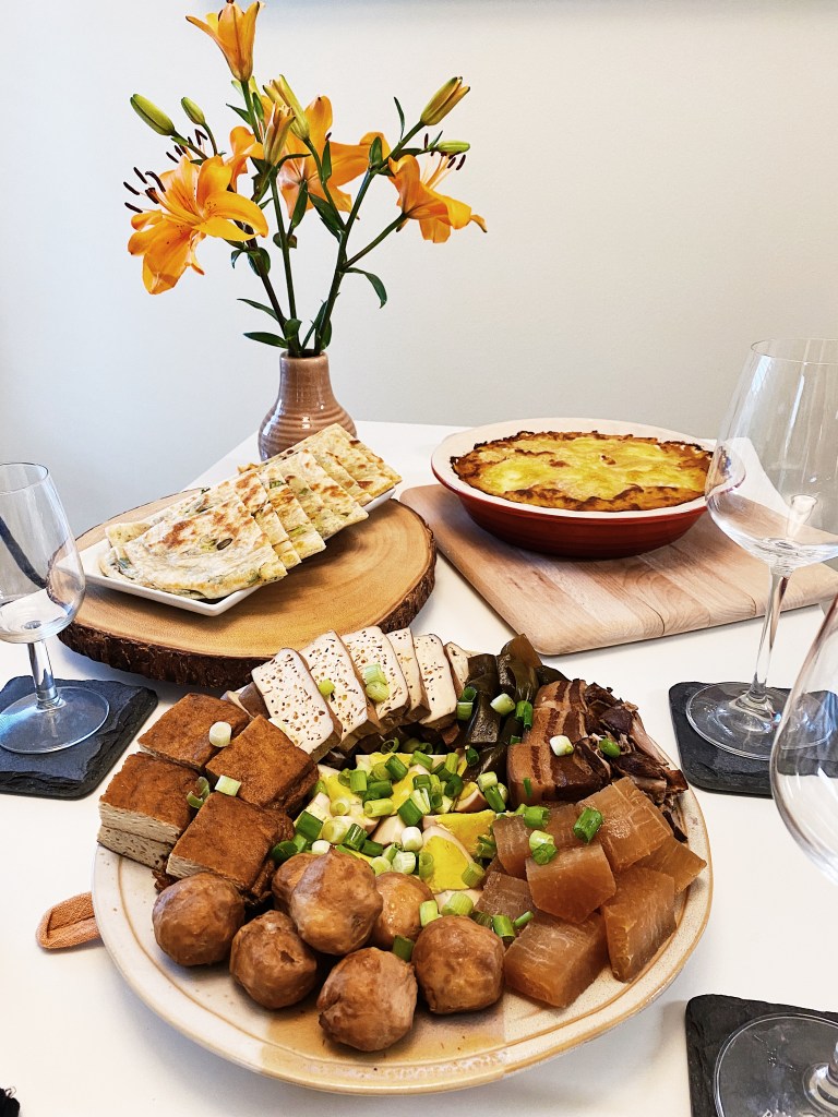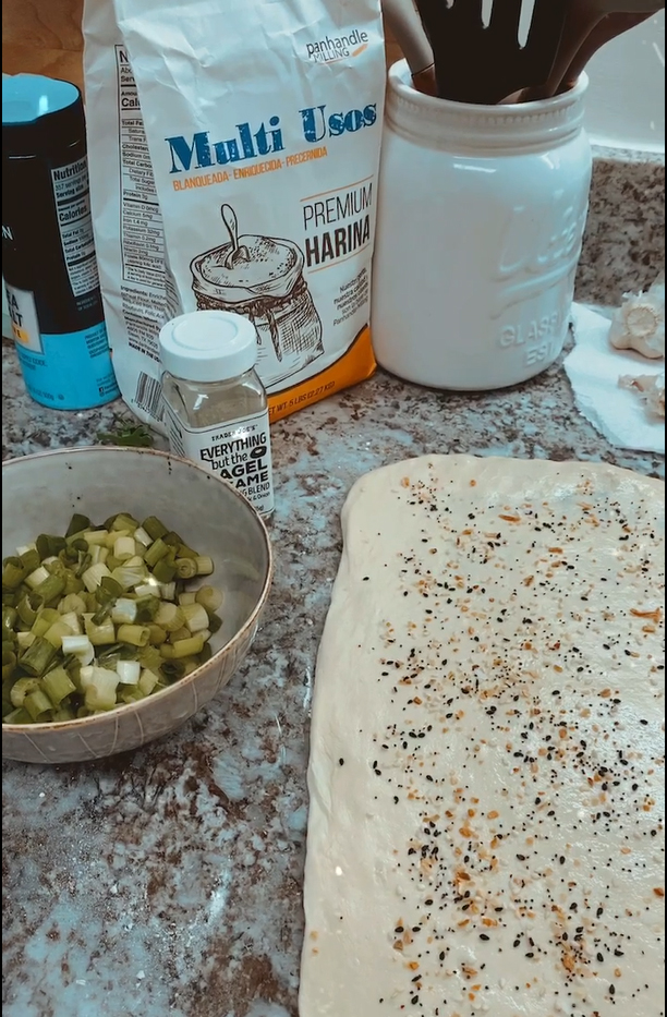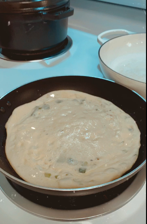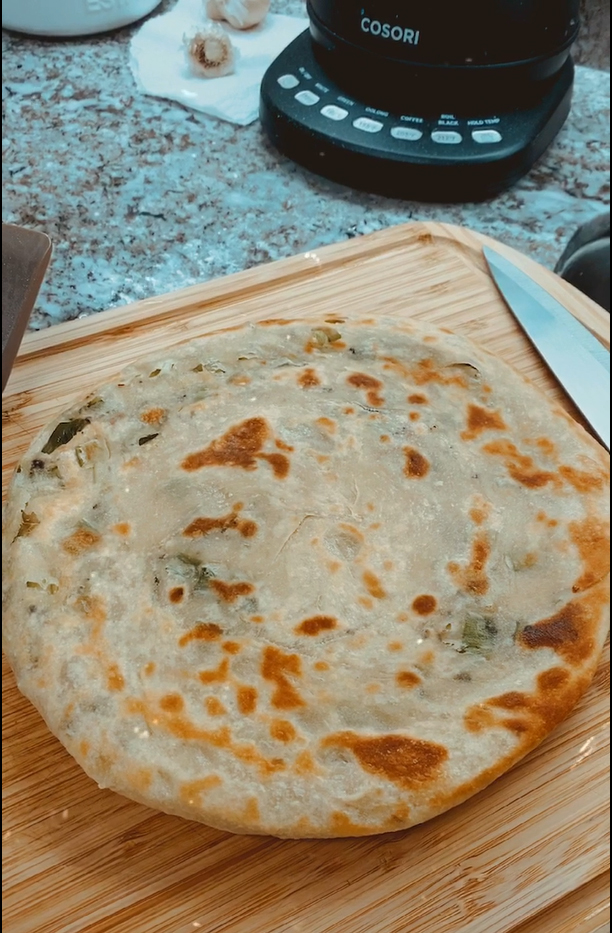 因為有六個大人,還是要準備點澱粉類比較會有飽足感,【自製的蔥油餅】不僅能品嘗到麵香融合青蔥的外酥內軟,不需要發酵、簡單好吃零失敗!