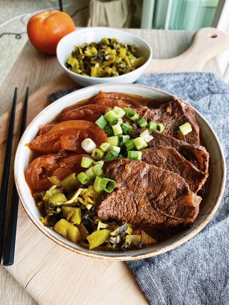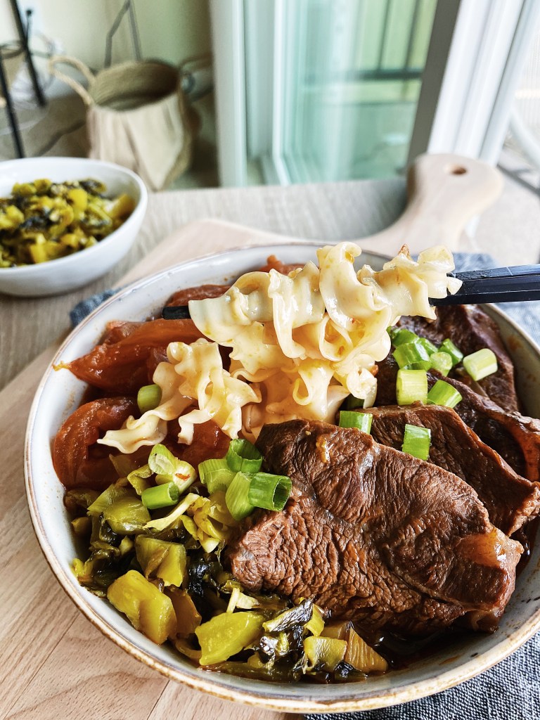 先生建議我可以把之前做過的經典好菜重複做,剛好最近又想吃牛肉麵了~之前我做的是紅燒牛肉麵,這次嘗試做了『🍅番茄牛肉麵』,拍完照先生又再次整碗秒吃完說:這是我吃過最好的番茄牛肉麵,比外面賣的還好吃~(上圖我最喜歡配手工拉麵!)