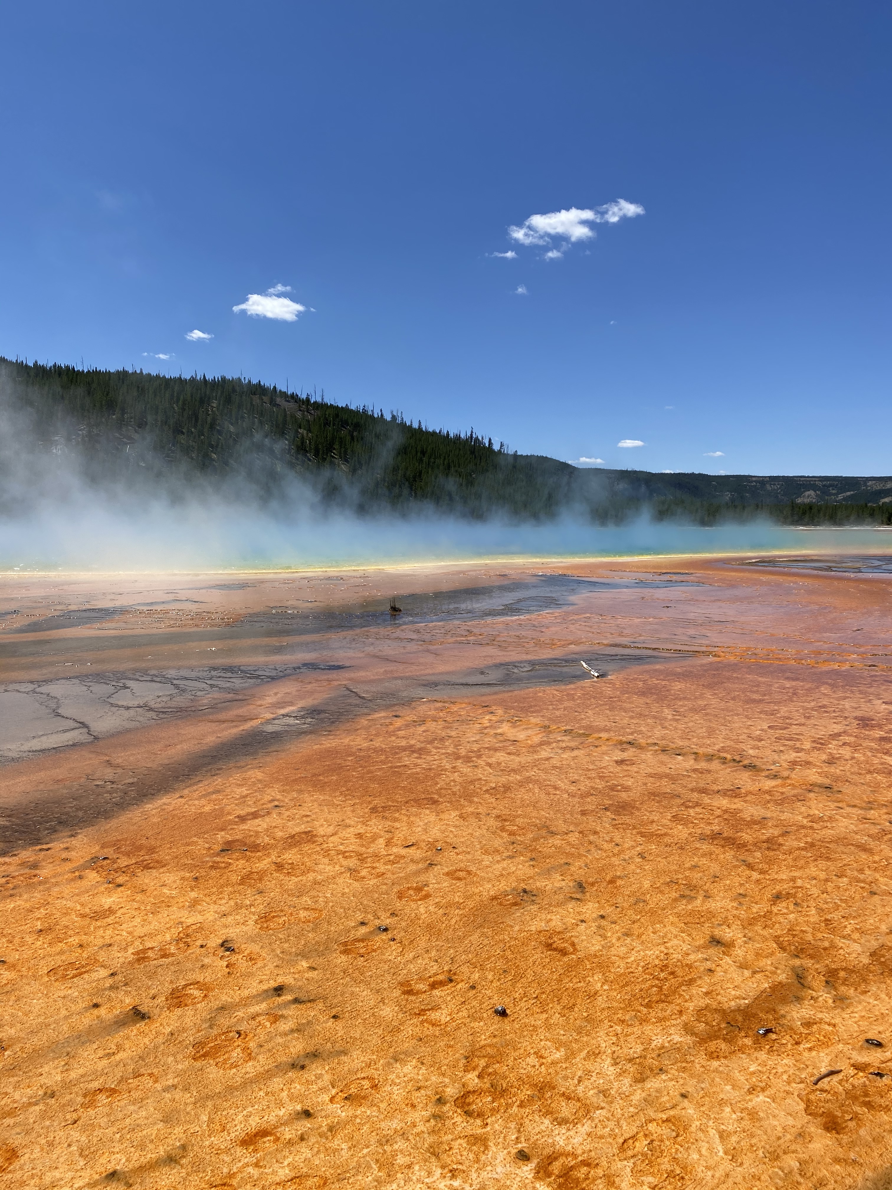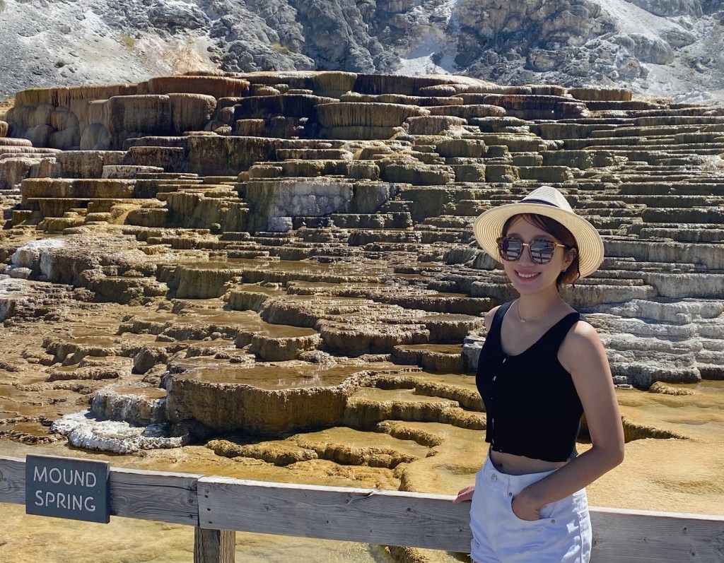 黃石公園裡好多處都有溫泉、間歇泉、噴泉,有的非常清澈,有的是因為地質的關係形成有紅色、黃色和棕色的泥漿。(這一區的照片怎麼拍怎麼美)