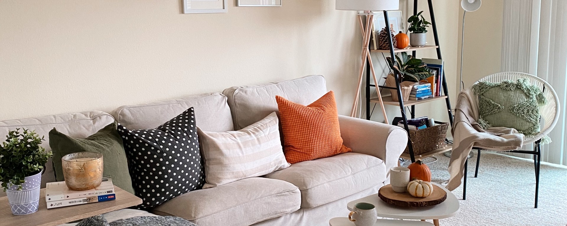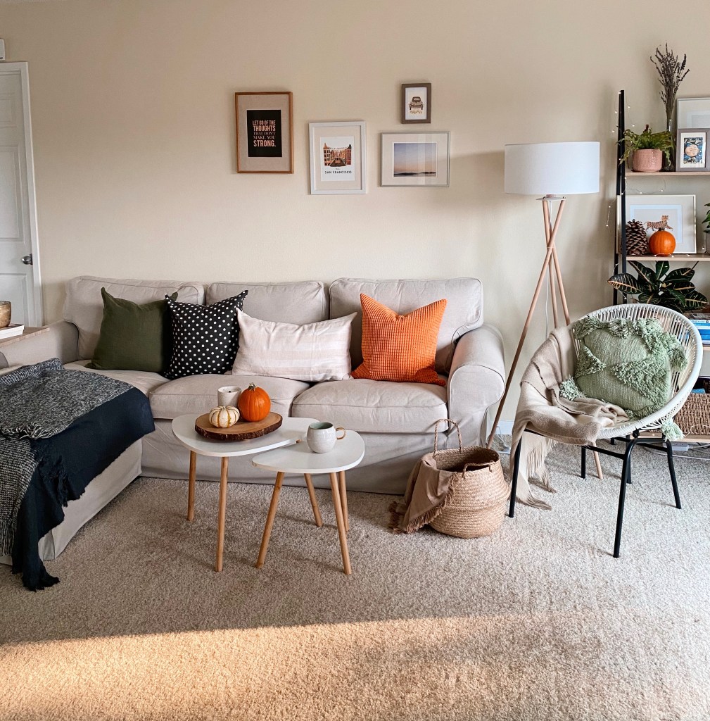DECORATION秋 天 小 佈 置 ❘ 𝐷𝐸𝐶𝑂𝑅𝐴𝑇𝐼𝑂𝑁 為了迎接秋天到來,家裡的佈置也做了小小的調整,逛了一趟ikea買了橘紅色和黑色水玉點抱枕,也換了深藍色的羊毛毯讓客廳的布品增加更有溫馨的感覺(新買的南瓜口味蠟燭一點燃家裡都是南瓜香~🕯🥧)配上在Trader Joe’s買的大大小小南瓜一擺出來就更有萬聖節的氛圍了🎃🍁,等再擺一陣子之後就拿來做點萬聖節應景的食物吧! 𝐸𝑚𝑚𝑎 分享此文: 按一下即可分享至 X(在新視窗中開啟) X 按一下以分享至 Facebook(在新視窗中開啟) Facebook 喜歡 正在載入... 相關