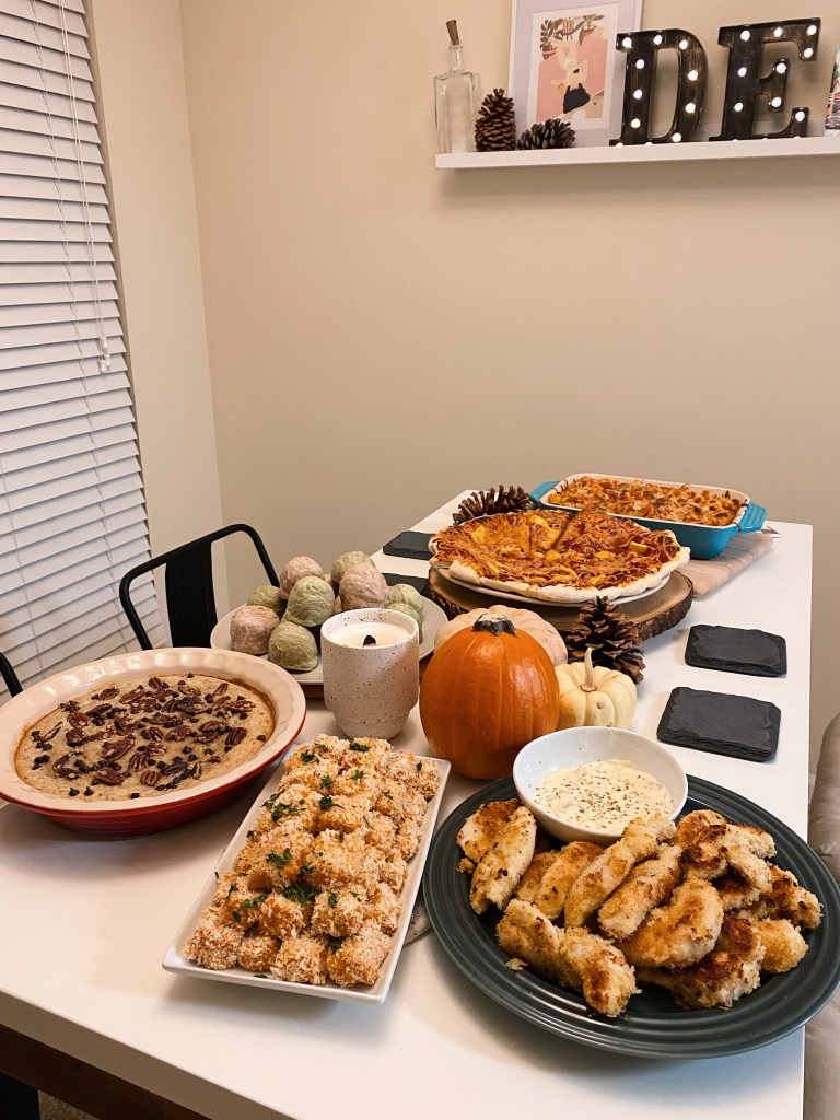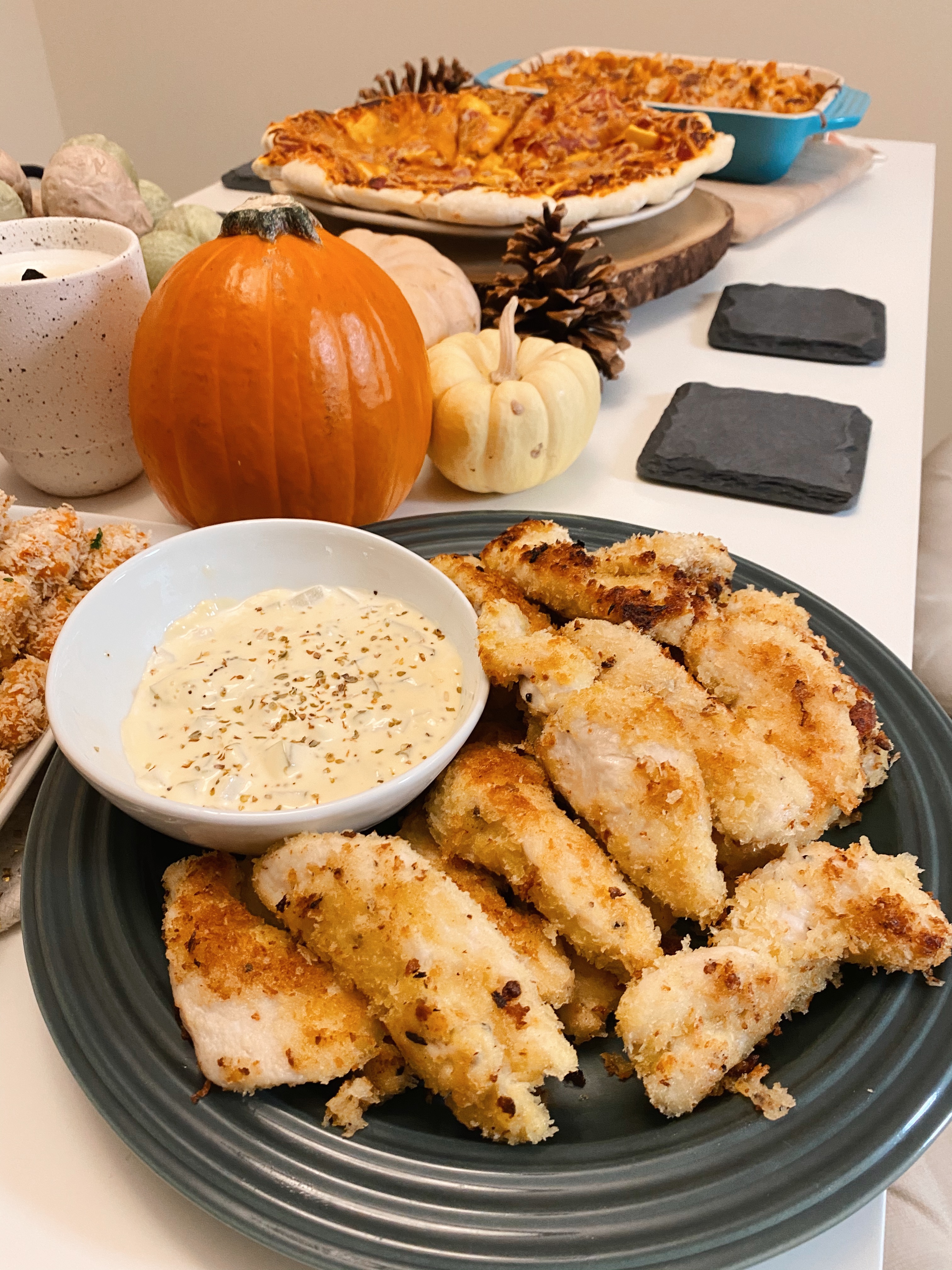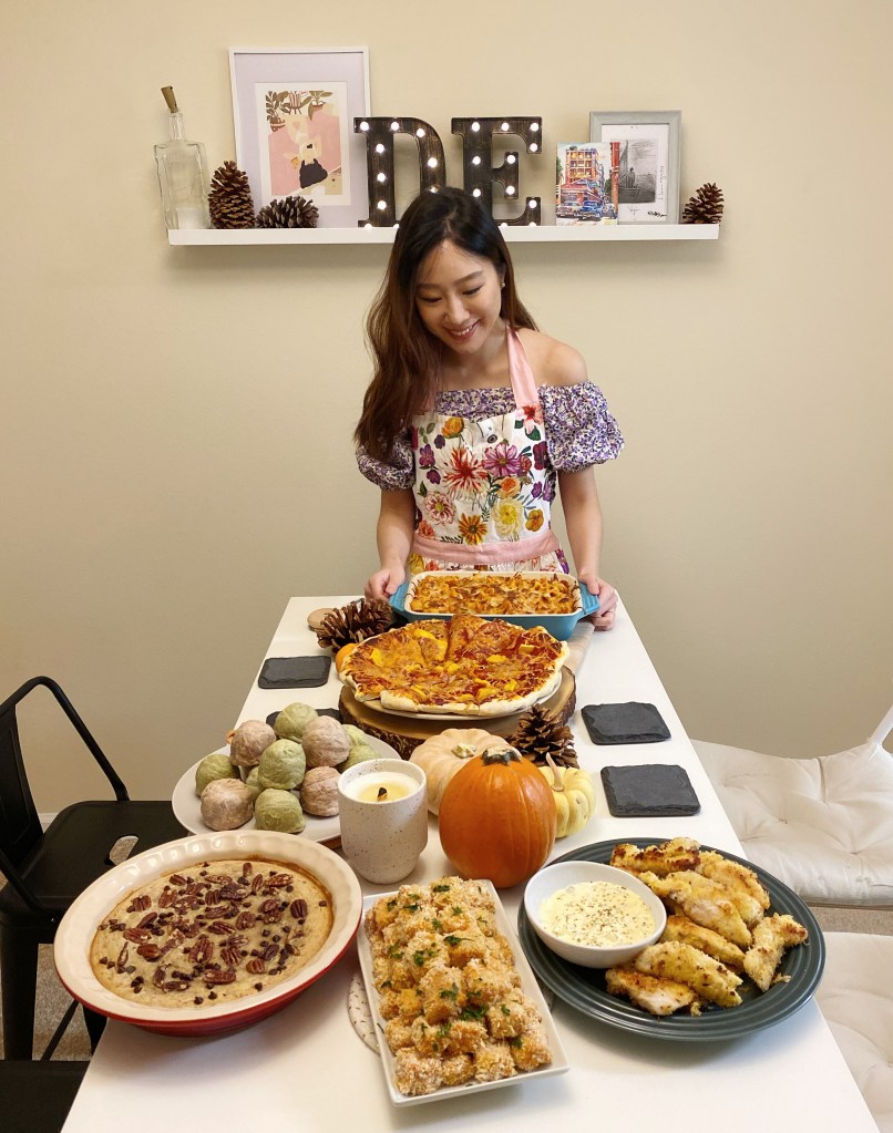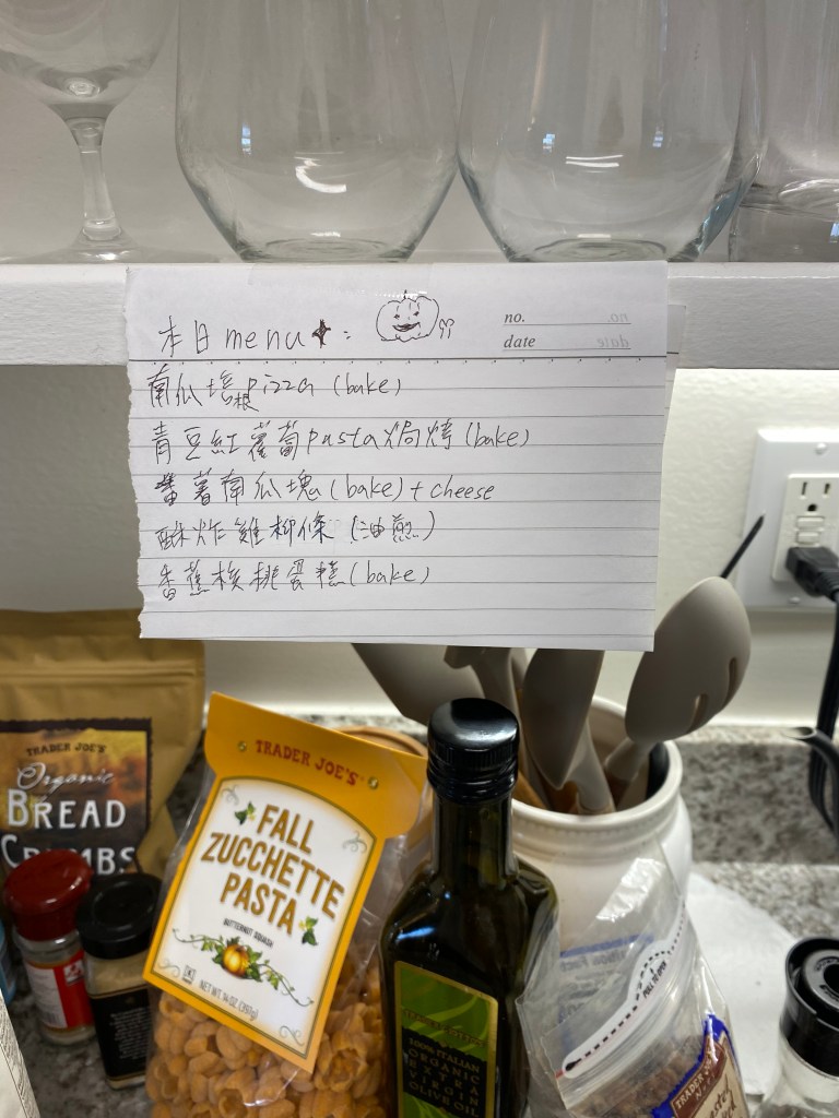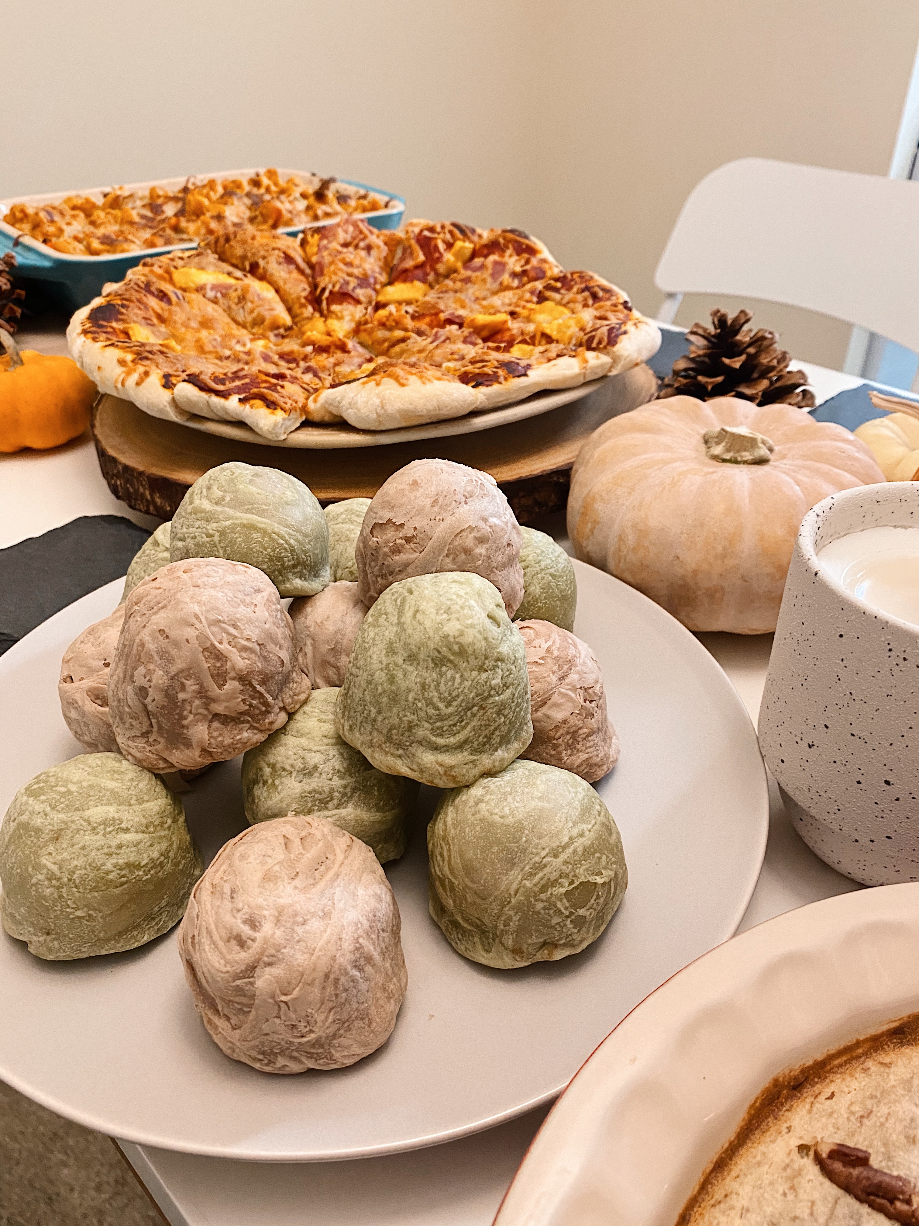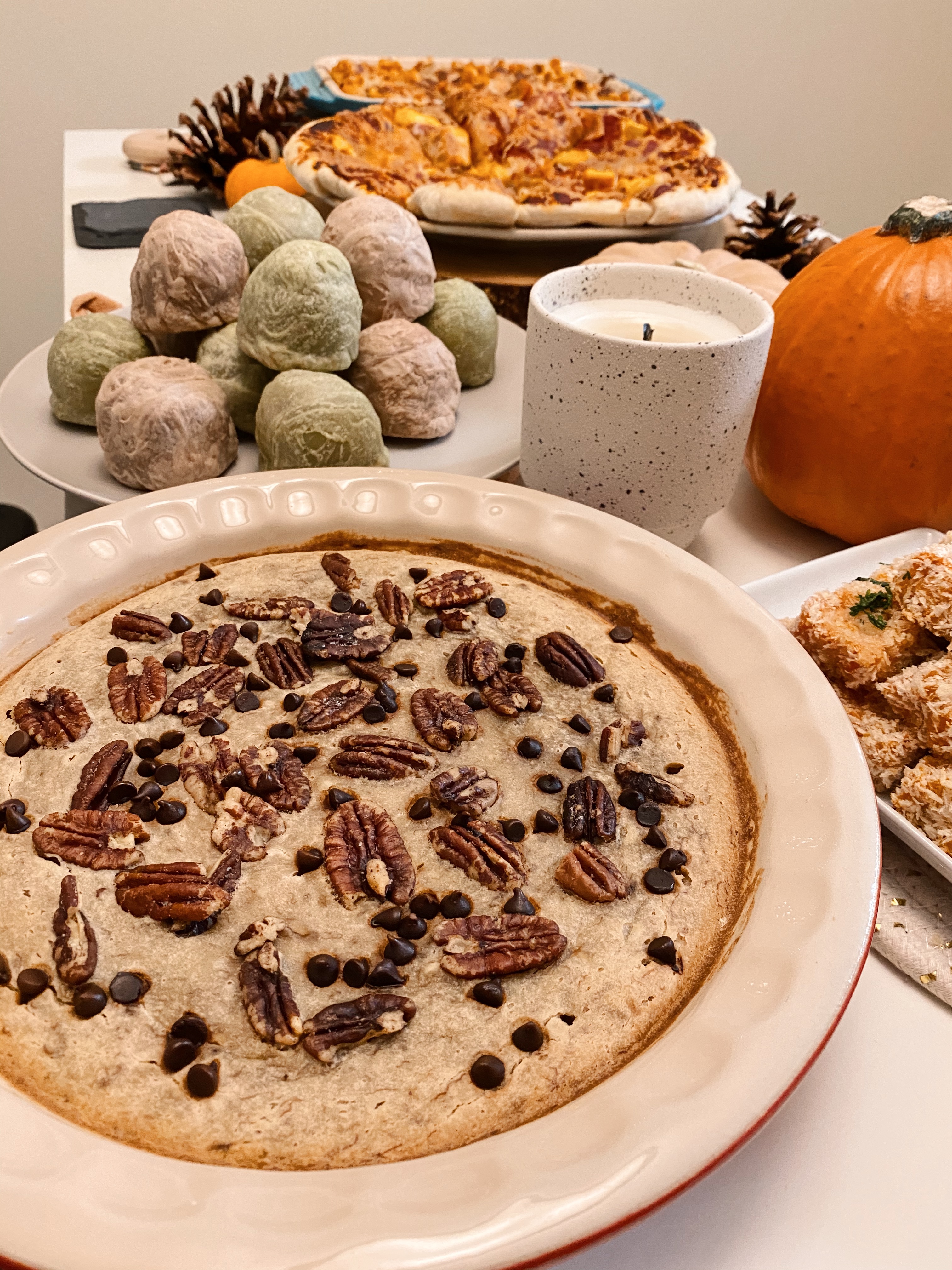 往年的萬聖節我和先生通常會出國玩或是參加一些變裝party(去年是去東京迪士尼海洋 💙💙💙我超喜歡!),但今年因為疫情的關係我們就在家裡辦一個小小的高中同學聚會,呼應萬聖節的主題所以我使用到了不少南瓜,從開胃菜酥烤南瓜番薯泥、雞柳條、到主食的南瓜義大利麵和pizza,最後的兩道甜點紅豆抹茶酥和香蕉核桃蛋糕,每個品項都有兩種可以選擇,整體菜色很多元也很豐盛,稍稍美中不足的地方是沒有一道中式料理(我一直覺得我的中式料理做得比西式來的好)未來再請朋友來吃飯我一定要再端上一兩道我的中式好菜!
