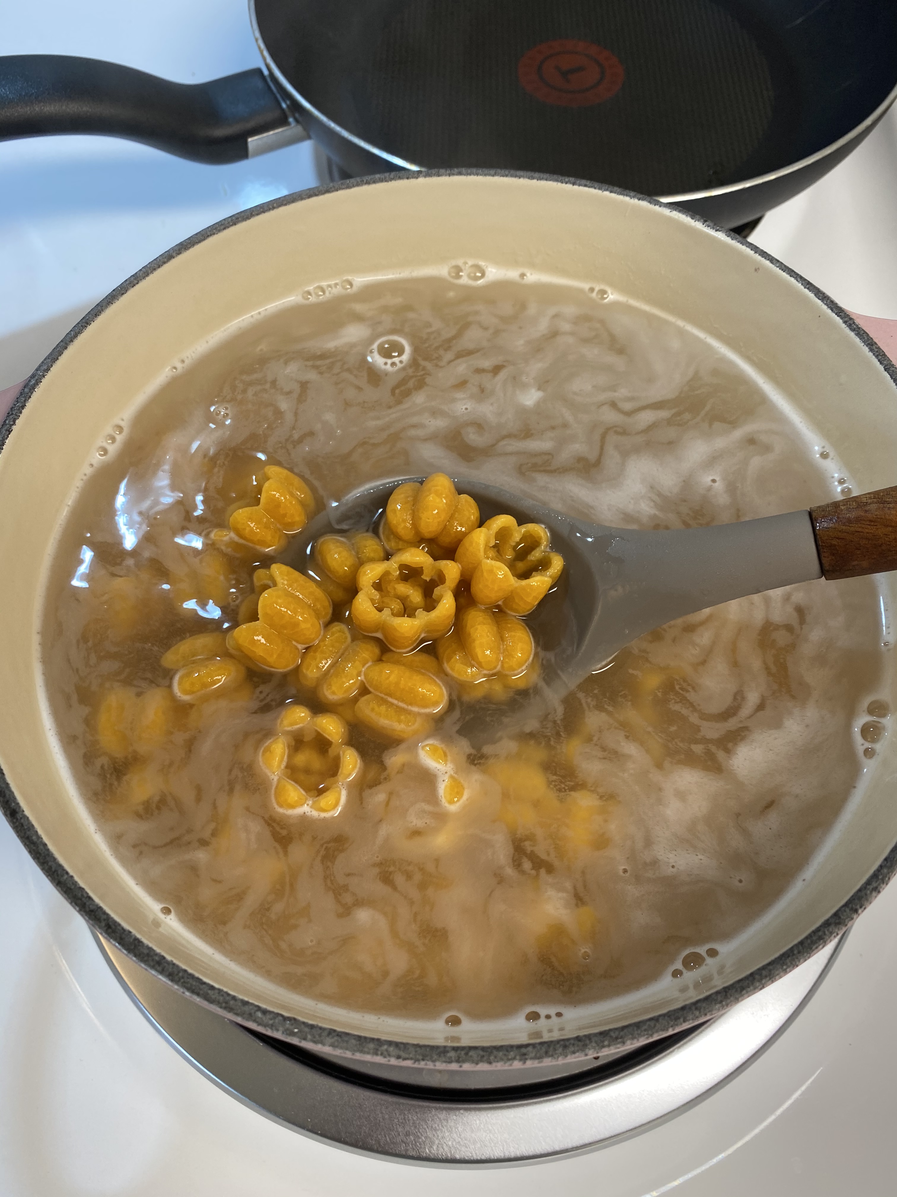 (我這次特別選用可愛的南瓜造型的義大利麵做焗烤)