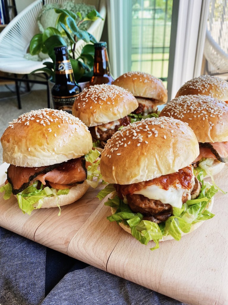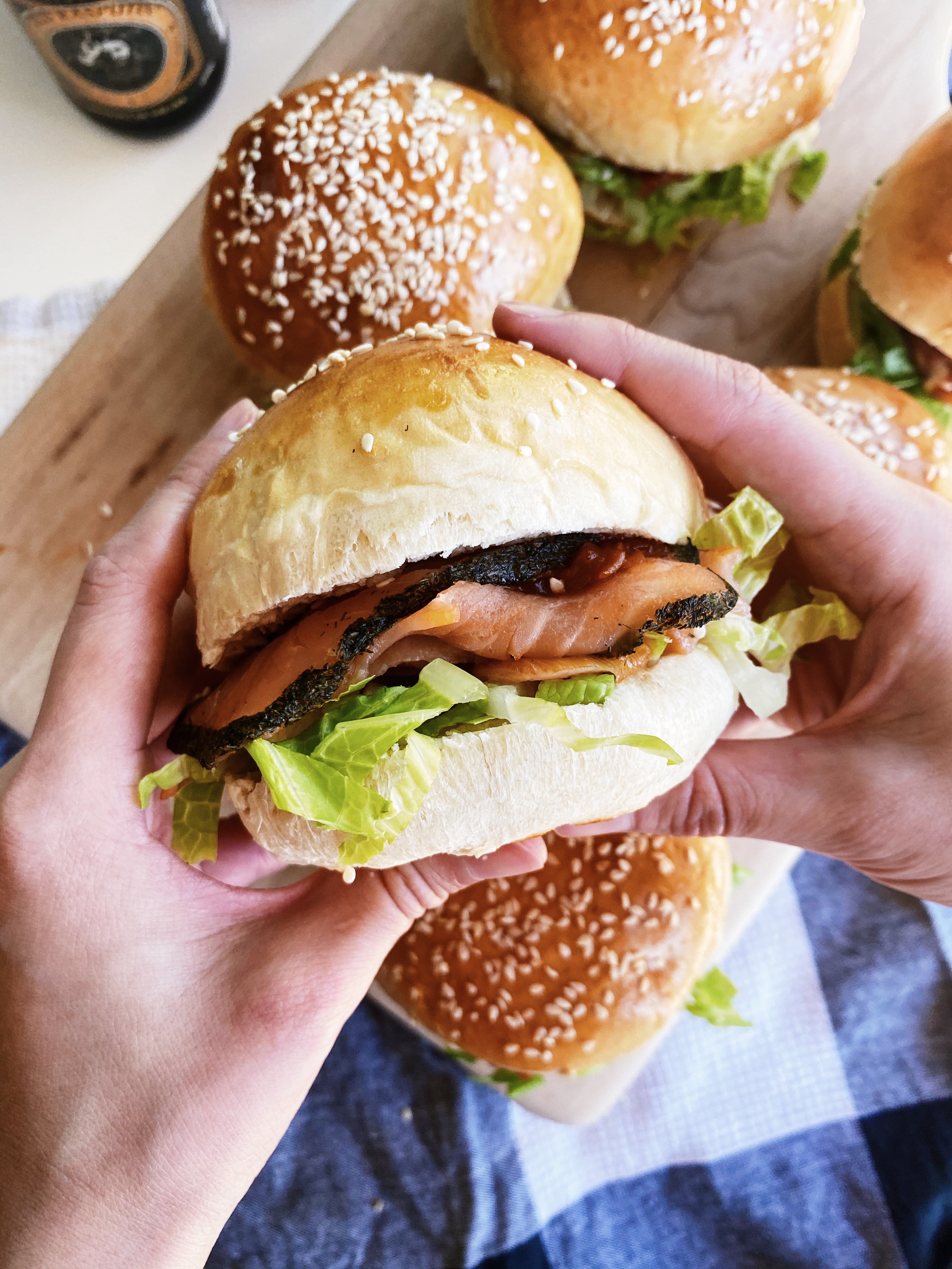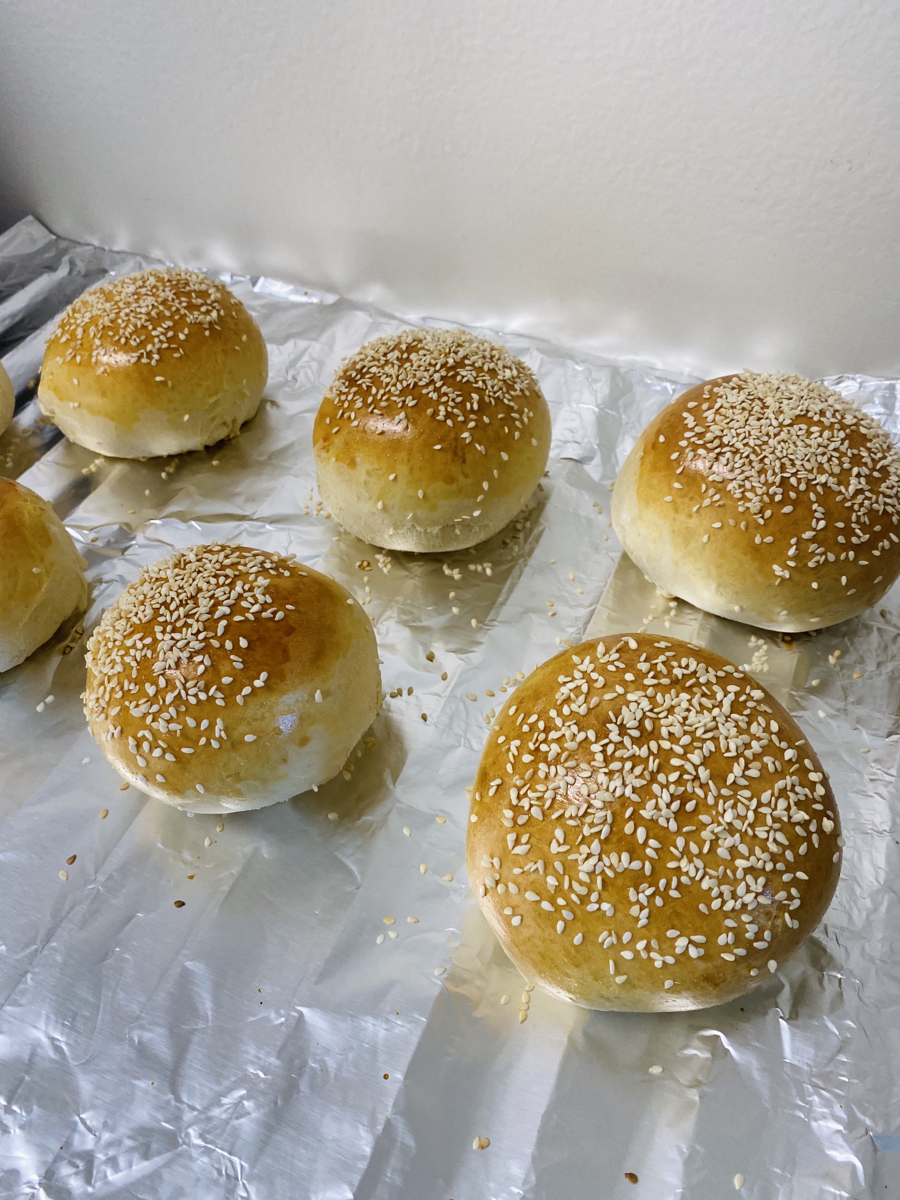 漢堡皮做起來滿簡單,小關鍵是烤之前要先把一個個麵團壓一下,不然烤出來會太圓+高,我這次做了6個漢堡皮,配合我的兩種口味漢堡 → ✔『醃燻豬肉漢堡』、✔『燻鮭魚漢堡』,兩種口味都超~好吃!🤦🏻♀️