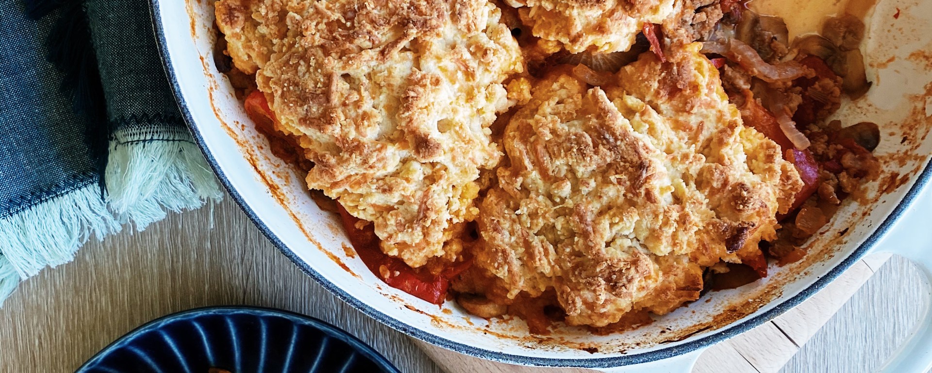 回到主題,🥘感恩節快到了,我想大多數的人可能會以烤雞做節慶主食,在我看過食譜後覺得這道『火雞肉派Turkey Skillet Pie 』也超級應景,我也由實作這道菜中發現原來比司吉是這樣製作的~底層炒的軟透的蔬菜和火雞肉完美融合在一起,上方放上混合了cheese和牛奶的比司吉,整體口感肉汁香濃口感鬆軟(看看文末的圖片),這真的是一道簡單、美味又快速的料理!