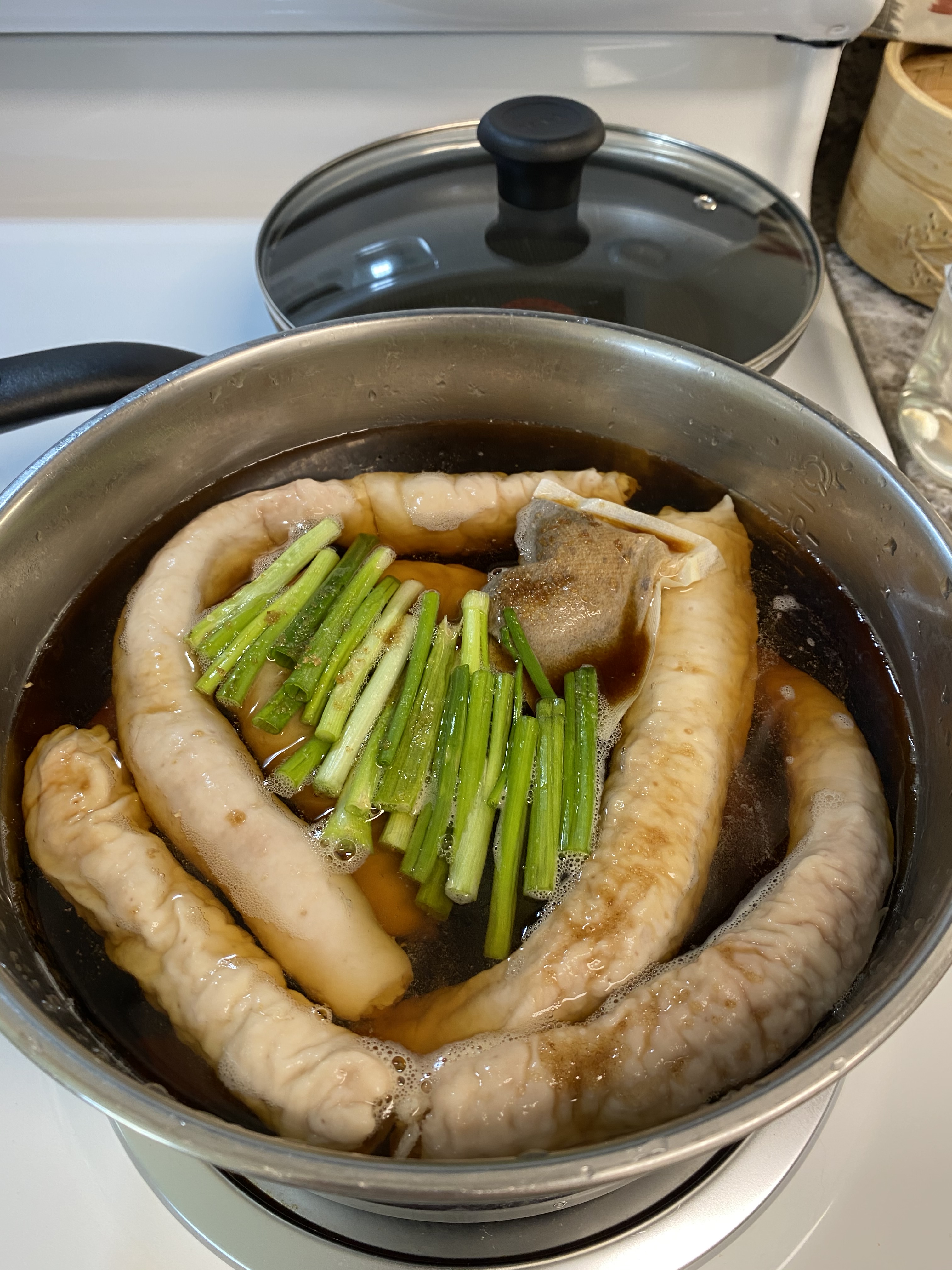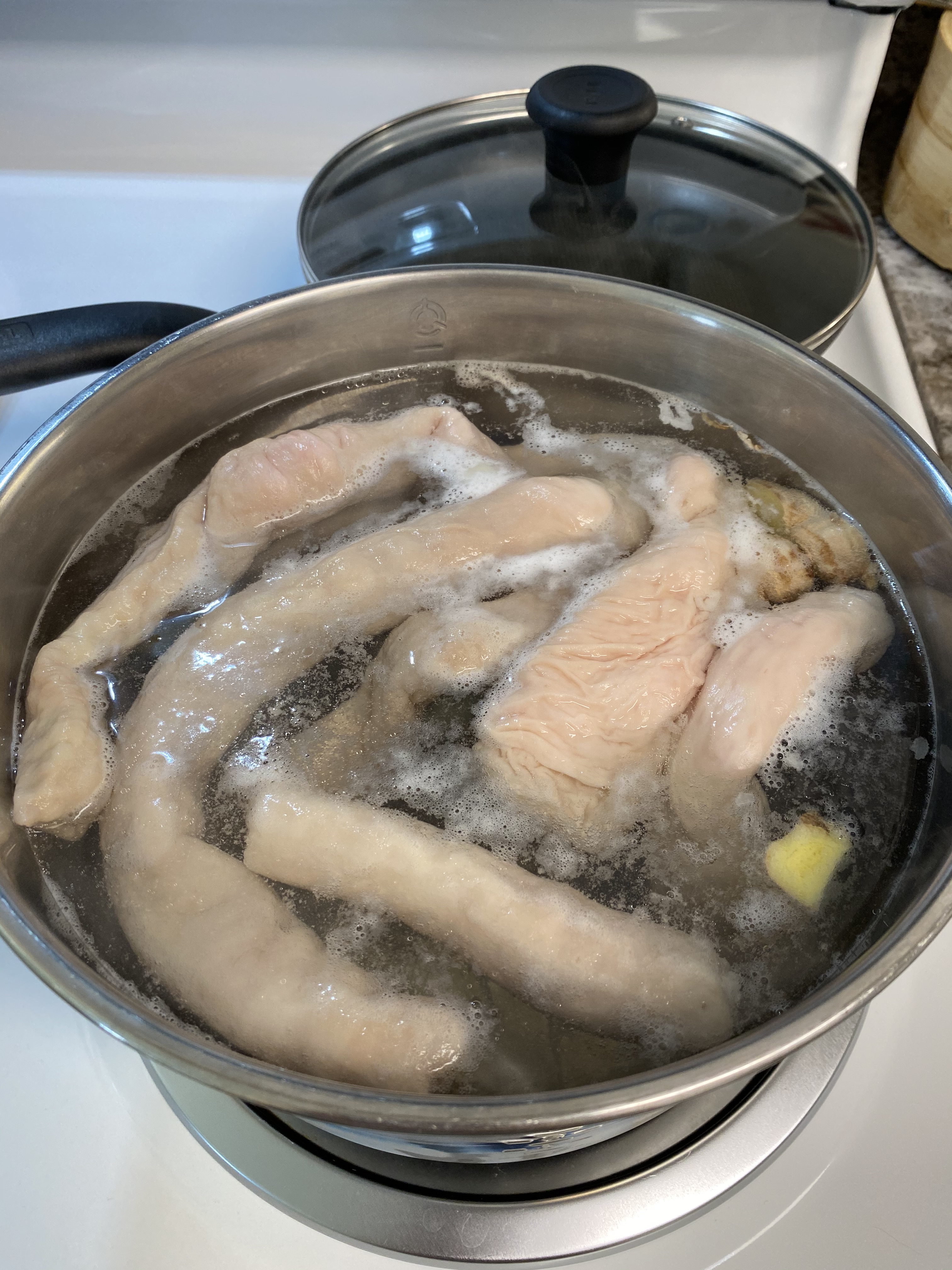 好一段時間沒吃到很台灣味的傳統小吃,之前做過滷肉飯、刈包、生煎包、碗粿,大腸麵線我一直想嘗試做!這次一樣是在weee!上面買到了2磅的大腸,🔺是生鮮的要自己處理~下圖的照片(內有生鮮大腸小心慎入),說實話我在清洗大腸的過程中有點頭皮發麻,很想尖叫🤦🏻♀️🤦🏻♀️,完全是抱著豁出去的決心!我就是要吃到,(清洗過程中因為大腸太滑了,有幾段來不及抓住它,直接滑進排水孔裡來😱)