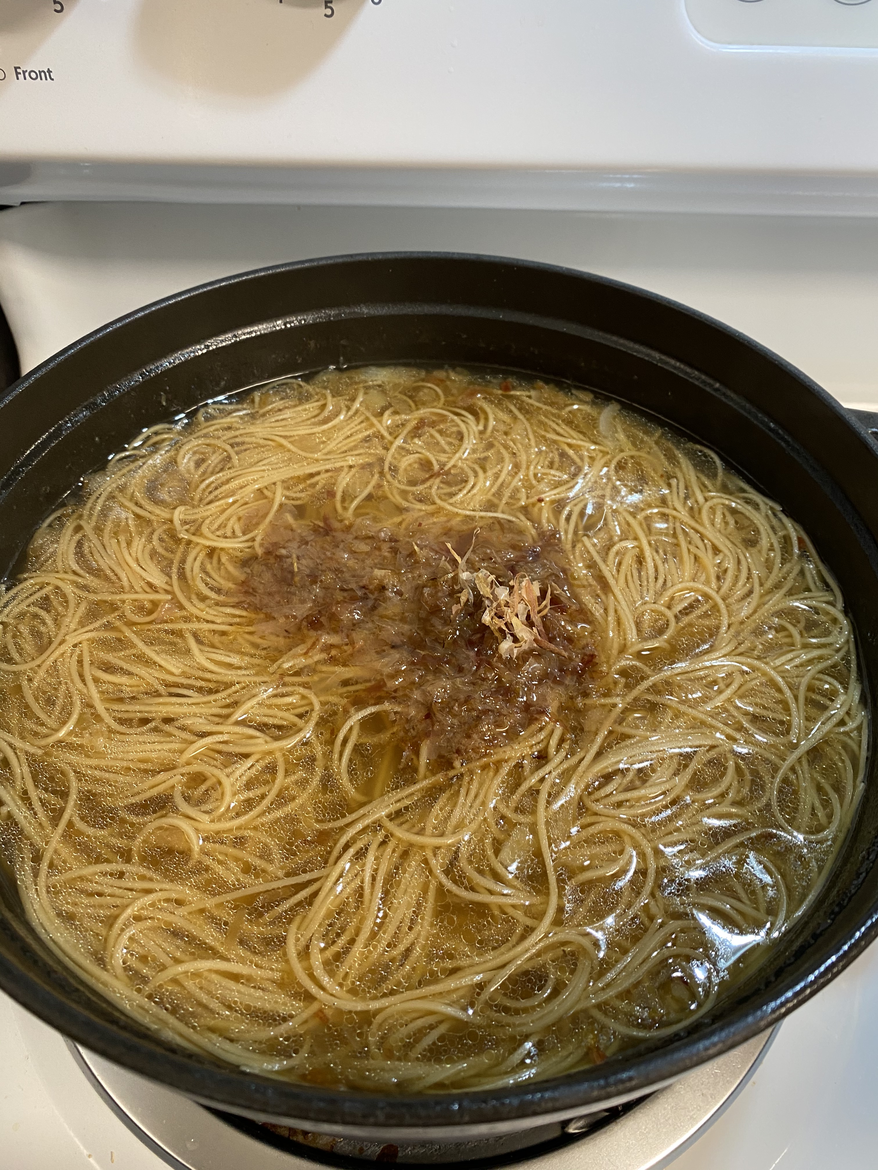 然後大腸麵線的另一個主角:紅麵線,我也是找了好久好久⋯某一天終於在大華找到(非常感動),每個食材都找到了終於可以來做大腸麵線了!(柴魚片在amzon上買的,五小包裝很方便)