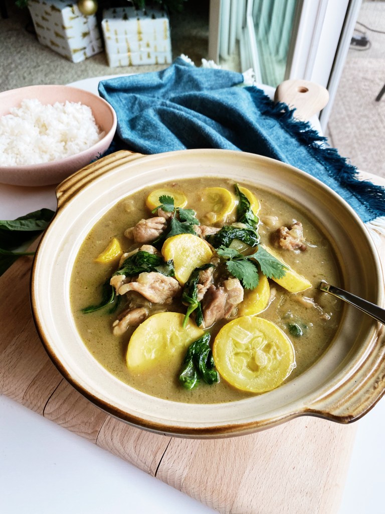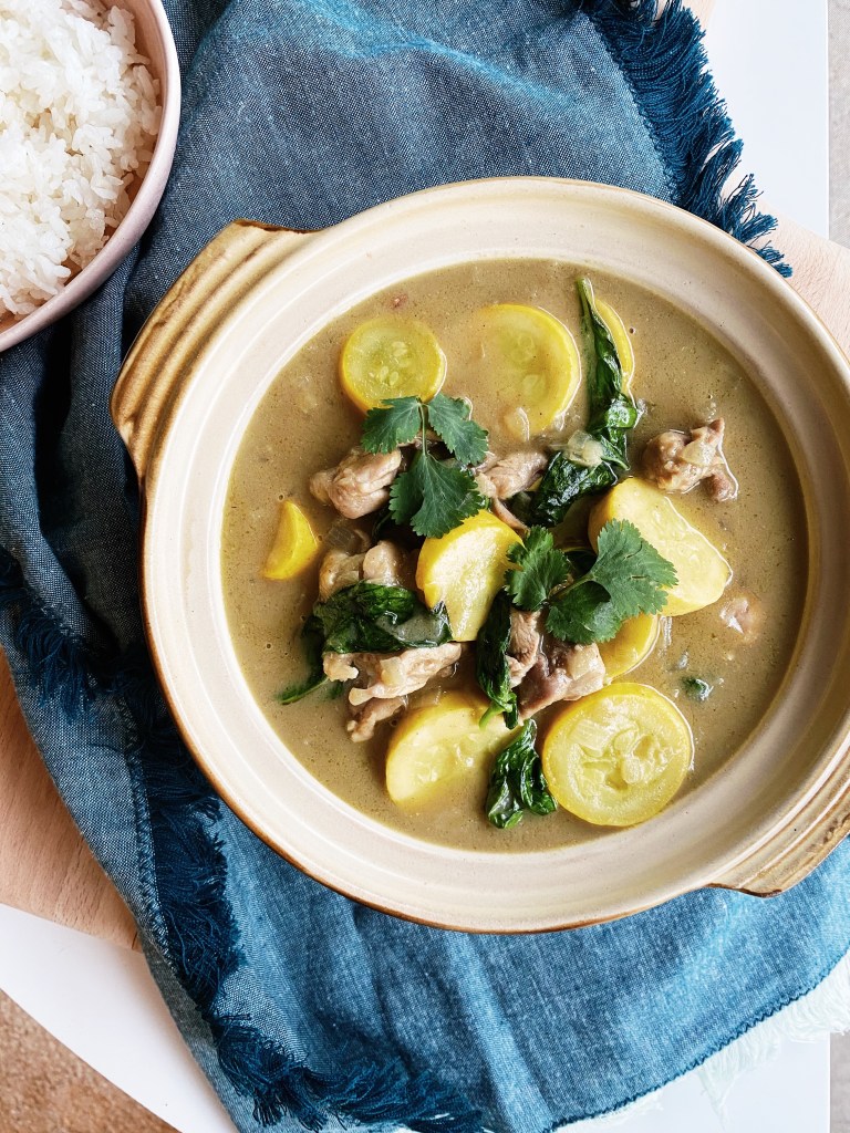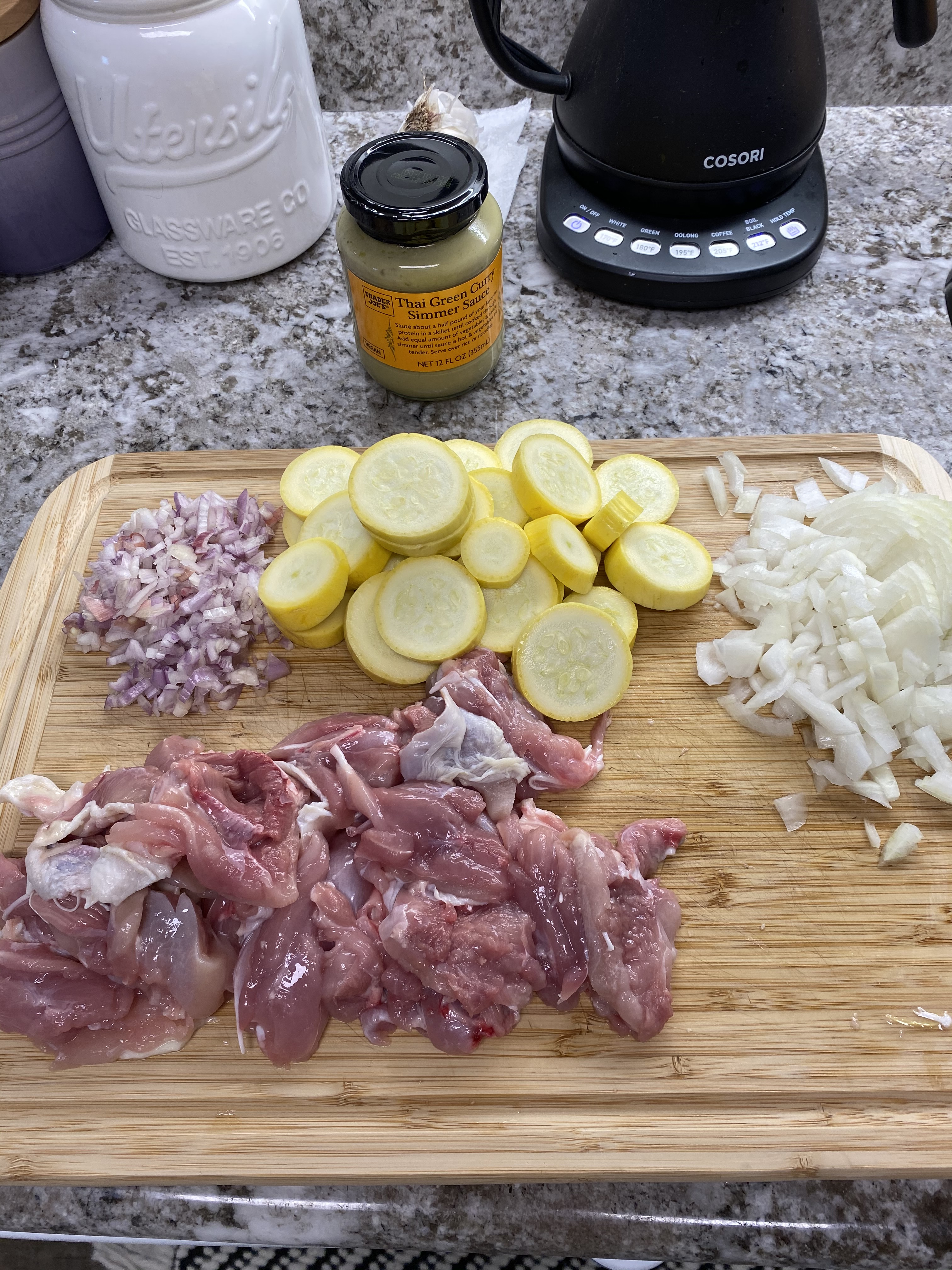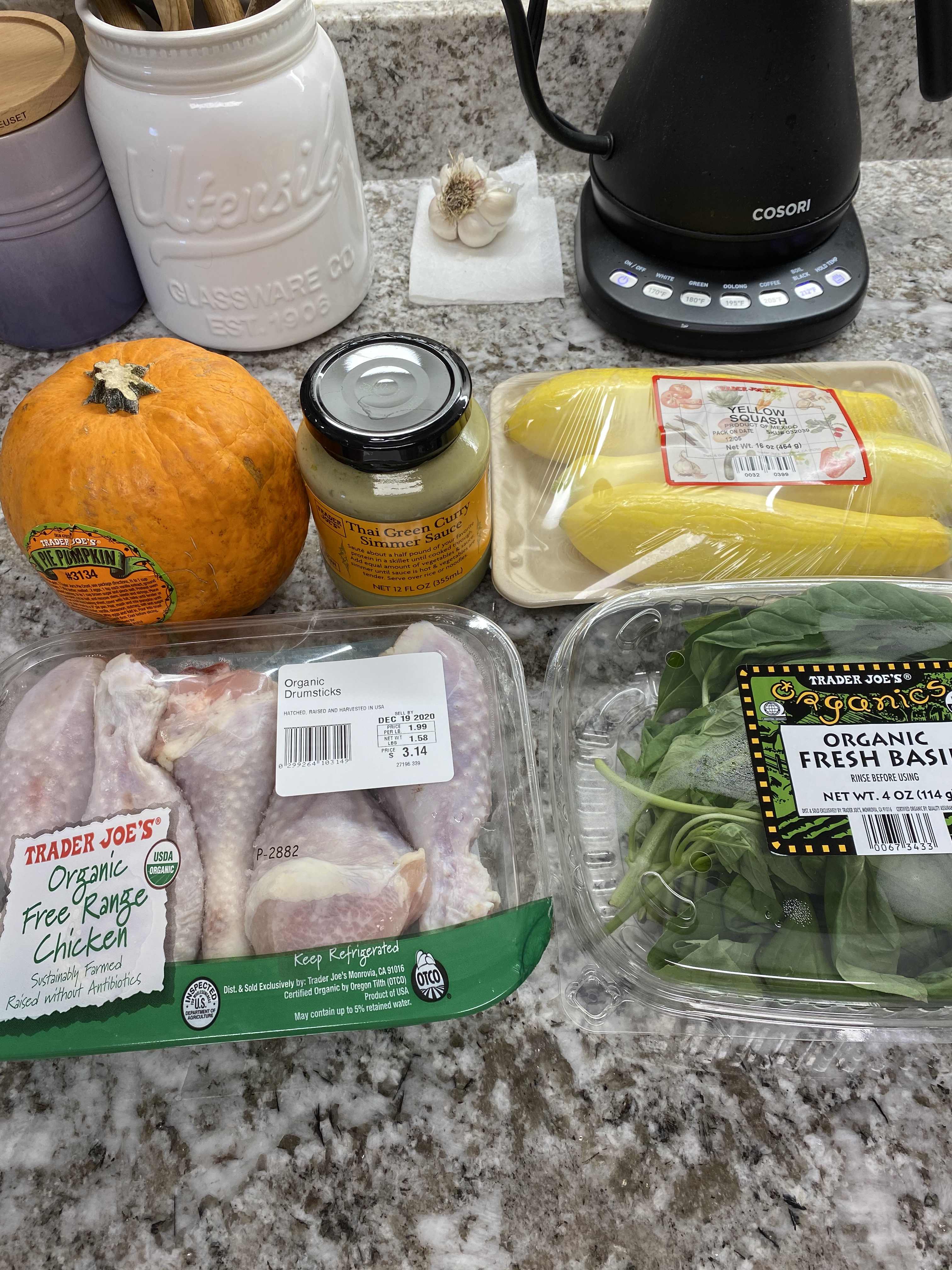 網路上很多分享都是自己打綠咖哩醬汁,但我這次選擇直接用trader joe’s賣的罐裝綠咖哩,超級方便,味道很棒(我之前也買過瓶裝紅咖哩做泰式炒河粉,味道也很讚),不會太辣也不會太鹹,我這次做一鍋是整罐倒下去剛剛好!配上帶有微脆口感的節瓜,這鍋我們當天晚上就吃光光了👌🏻👌🏻
