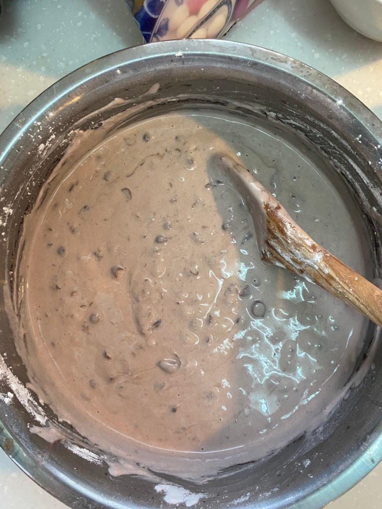 每一個地方都要拌均勻,粉漿大概成這樣,不能太稀也不要太稠。
