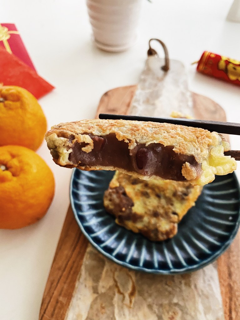 蒸出來的年糕甜度適中、口感Q彈,每一口都還能吃到紅豆顆粒,超級滿足🤤,放涼之後我會把年糕裹麵粉和蛋液下鍋油煎,這就是我每年過年最期待的甜點了!大家在過年期間閒暇之餘也可以動手做做看,祝大家新年快樂!