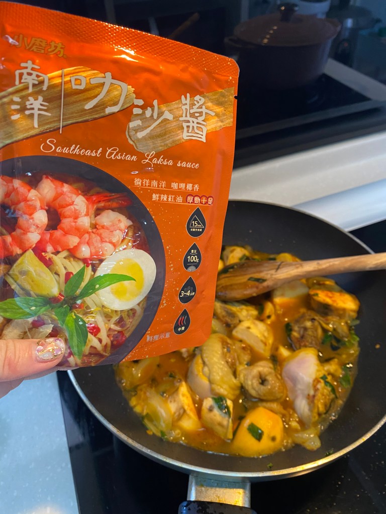 回台灣每週逛著超市都對很多新鮮的東西很感興趣,不過離開短短一年就出現好多新的品牌和商品都是我沒見過的,所以每次去趟全聯我都是扛個三袋回家(明明家裡只有兩個人還是把櫥櫃都堆滿滿了🤣),平常比較少吃南洋料理,這次我用在超市買的『小磨坊叻沙醬』做了一道超簡單快速的開胃料理,(真的不是業配,純粹自己買來想嘗試~)