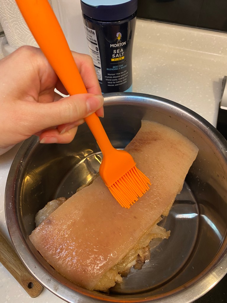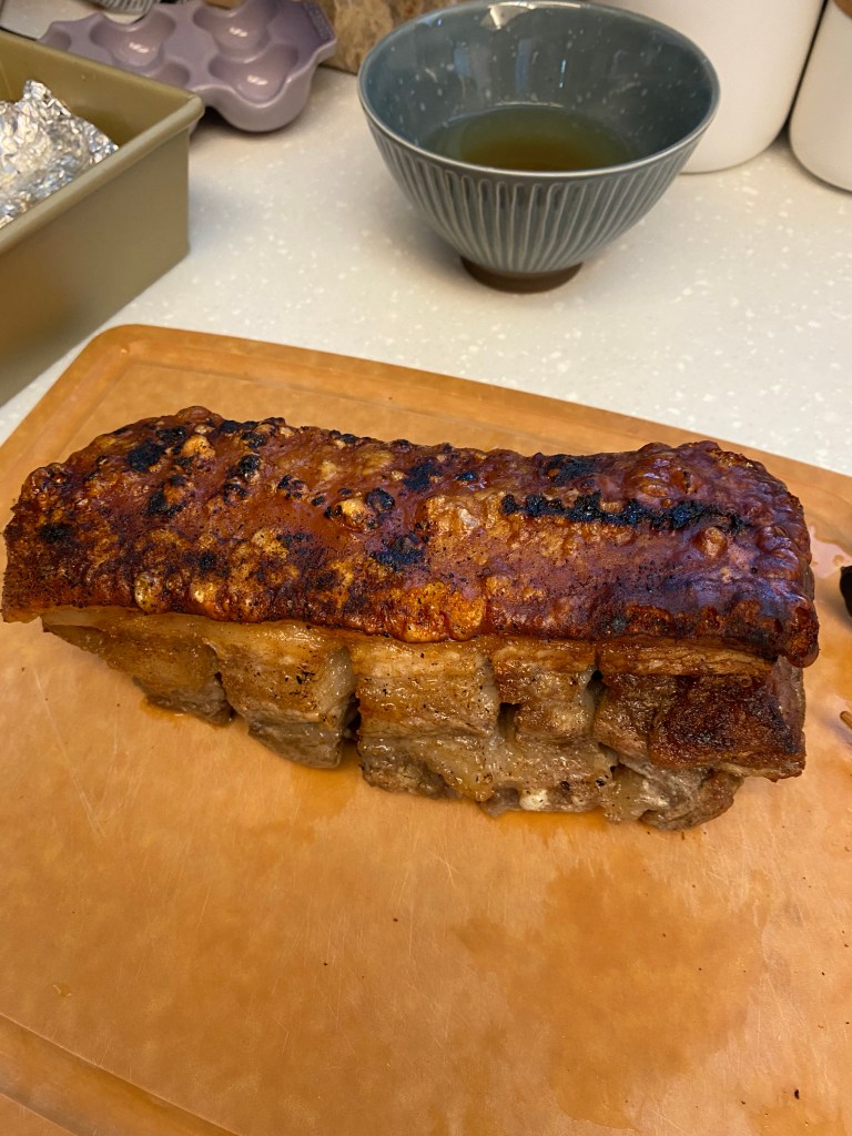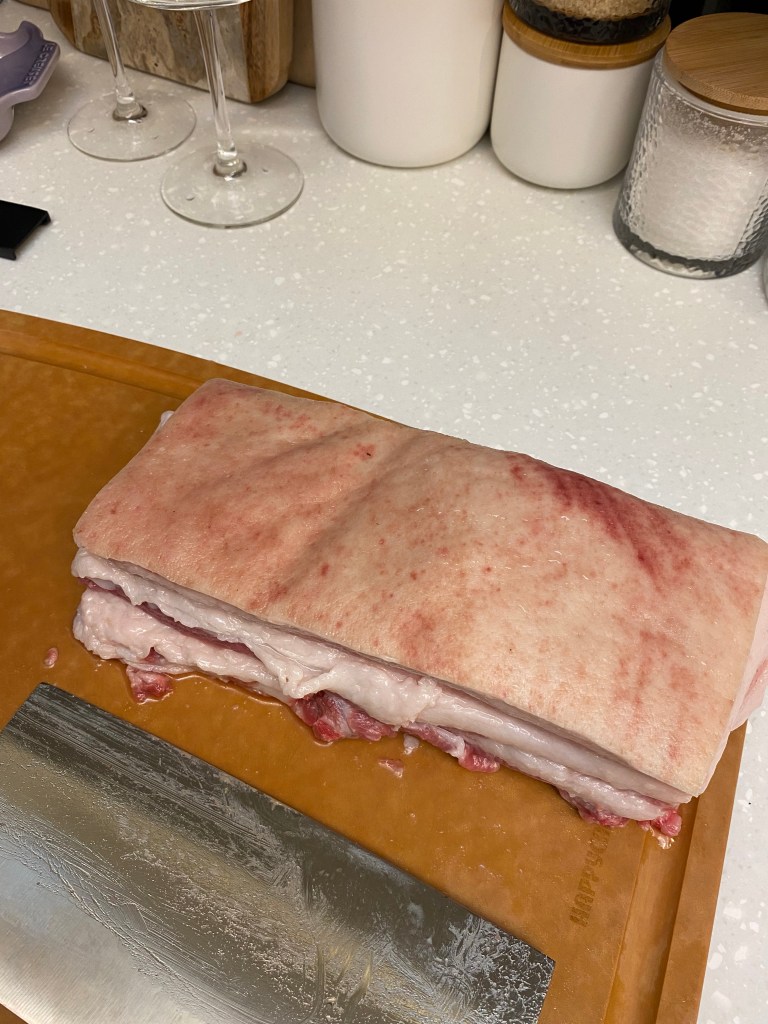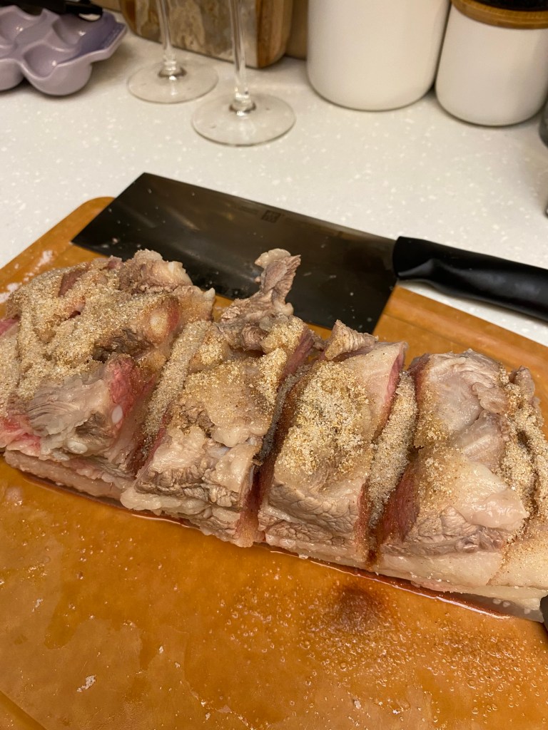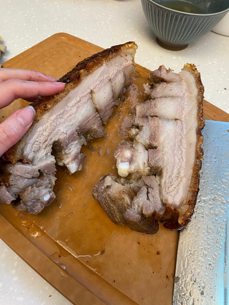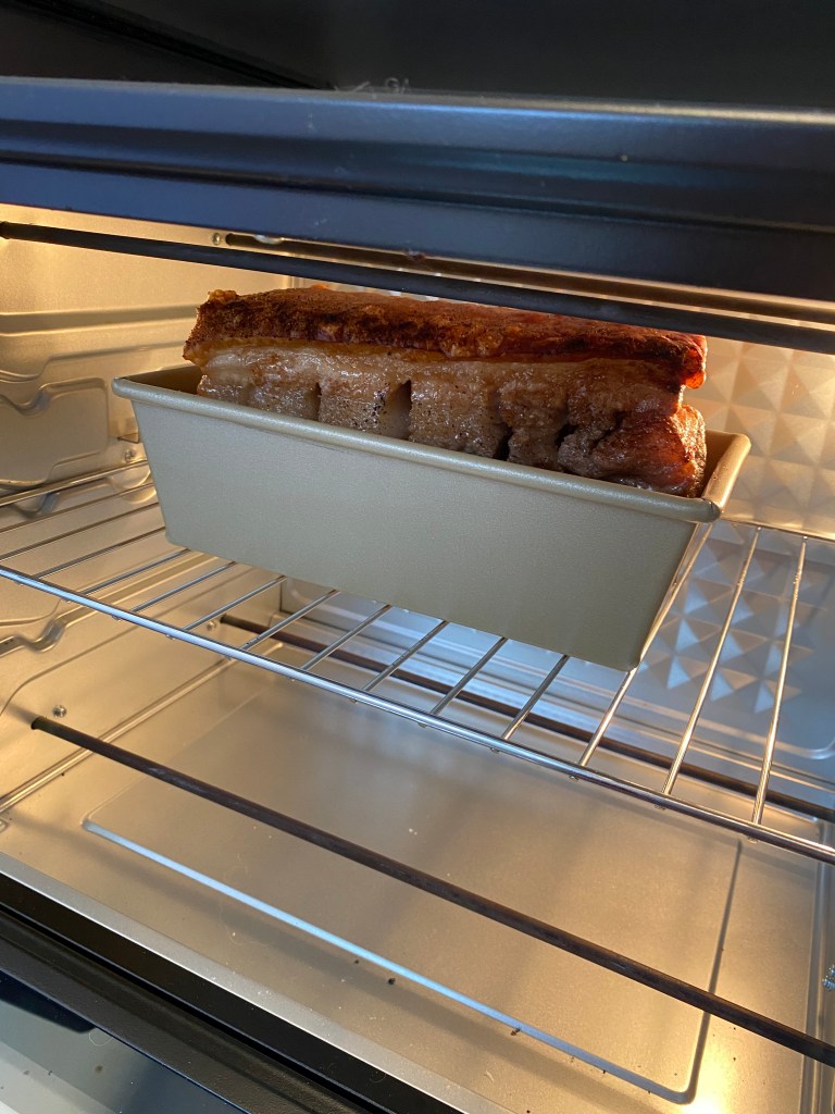 首先前置作業要做好,📌再來是烤箱也很重要!想起之前在灣區的家,烤箱火力就是一個猛字啊,broil一打開瞬間可以讓表面達到金黃酥脆,這次最大的心得就是大烤箱的必要性~因為烤脆皮燒肉的份量比較大,日本製的小烤箱雖然平時很好用,但烤五花肉還是不夠給力呀🤦🏻♀️,所以整體烤的時間多了些,最後我直接拿出噴槍把表面加強烤一下,終於呈現逼逼ㄅㄡㄅㄡ的起泡感了!