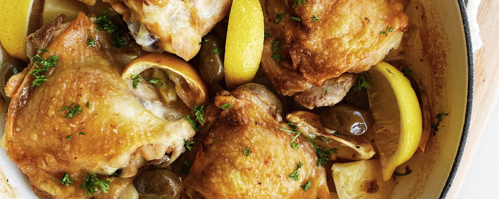這道【馬鈴薯檸檬燉雞】是單鍋料裡書中一道很開胃的地中海料理,而且食材好簡單,雞腿肉、馬鈴薯、檸檬、橄欖,都是冰箱的常備食材,就可以在家裡輕鬆完成這道異國料理!檸檬酸酸的味道混合著雞汁和蒜香,舀一瓢被烤的吸飽湯汁軟綿的馬鈴薯😌,真的是香氣十足又清爽開胃!(好吃到我後悔只放4塊雞腿肉進去,應該塞到6隻的)
