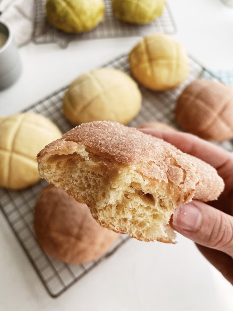 這次挑戰了菠蘿麵包,一口氣做了三種口味,抹茶、草莓(對!不要懷疑是草莓,不是巧克力🤣)、原味,步驟不難,但只是比較繁瑣一些,最後看到一顆顆飽菠蘿麵包在烤箱裡烤的澎澎的,超可愛~(我覺得有點像足球?⚽️