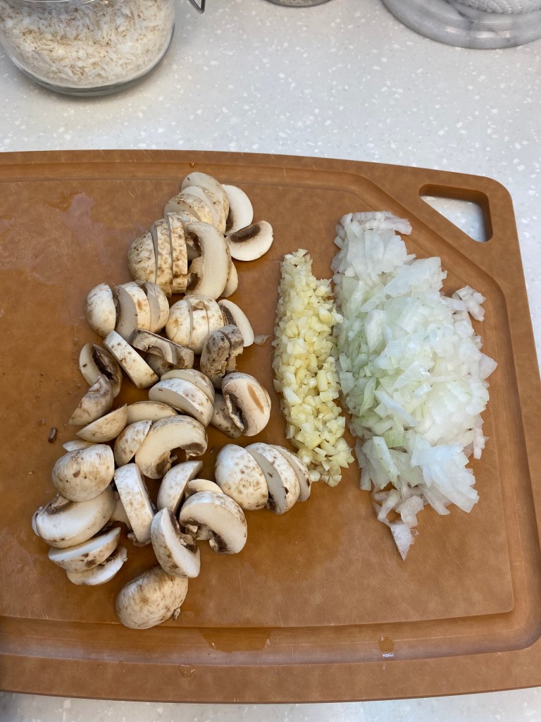 將洋蔥切末、蒜切末、洋菇切小片備用。