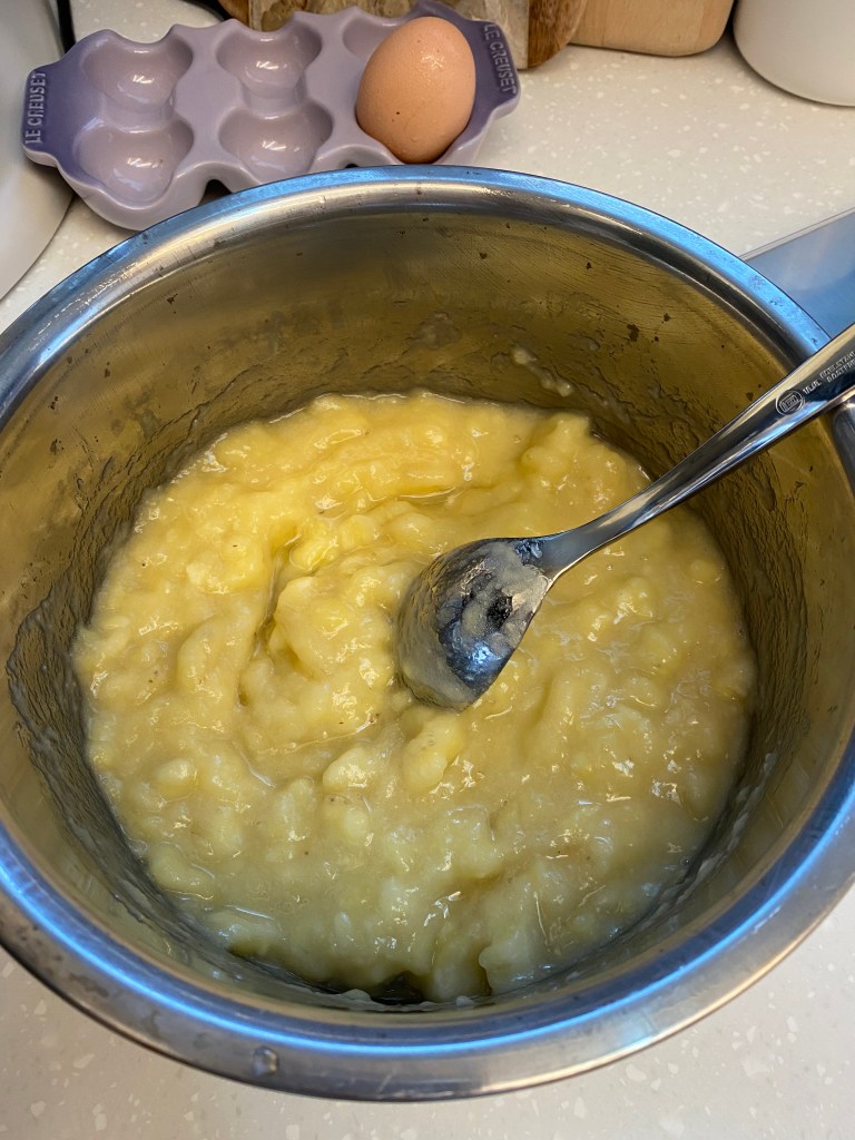 將熟香蕉搗爛成泥狀 (我之前試過用沒有這麼熟的香蕉效果沒這麼好,還是又熟又軟的香蕉最適合~) 。
