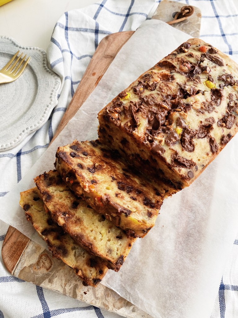 最一開始我在美國第一次做香蕉蛋糕時,就覺得超簡單又好好吃,但當我加了巧克力後才發現美味程度又飆升兩級,我很喜歡這種有點微濕綿密的口感(就像我也很愛麵包布丁!),重點是要使用擺到很軟很爛的香蕉最好,搭配水滴巧克力豆(很難找,我是從美國帶回來的🤣,大家可以告訴我哪裡有賣~),烤出來的蛋糕香蕉氣息濃郁,濕度也很剛好,巧克力豆分佈的很均勻,完美融合在蛋糕裡超級match,我最喜歡剛烤出來時溫溫的吃🤤,推薦給大家這個居家百吃不膩的甜點!🍌🍫