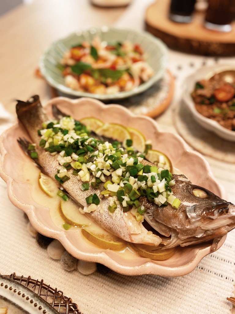 再將蒜末、蔥花(能有香菜葉更好更香)、砂糖、辣椒看個人要不要灑上,再蒸5分鐘就完成了!吃的時候也可以再擠點檸檬增加酸度~