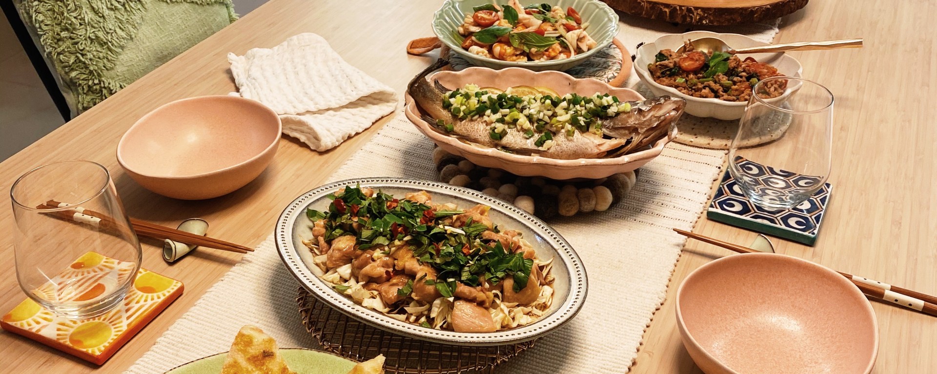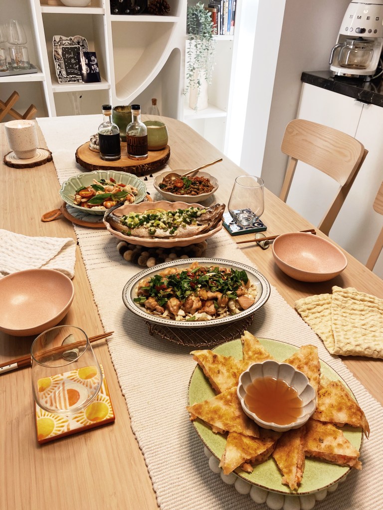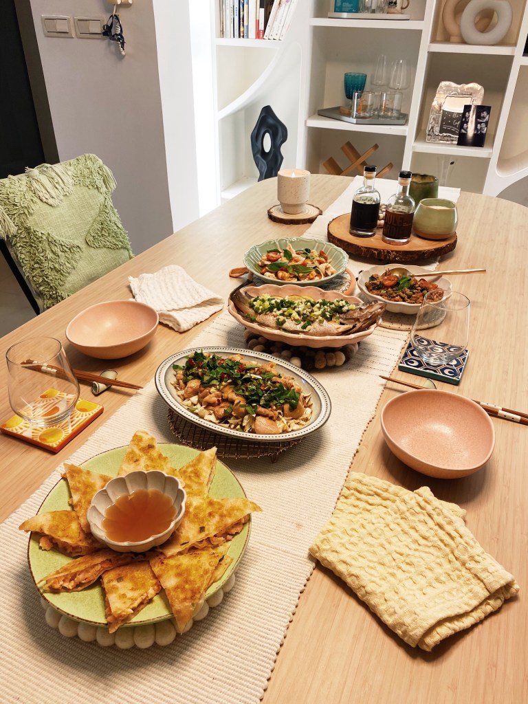 兩人份做這樣好像有點多 哈哈,因為太想要維持周末在家也要有儀式感,一口氣做了五道菜,必須承認有點累到自己,下次周末晚餐需要喘口氣休息一下~但做了一桌泰式料理還是好滿足,當然直接叫外送很簡單,但我這次又學了好幾道之前沒做過的料理,也增加了下次再做的心得!
