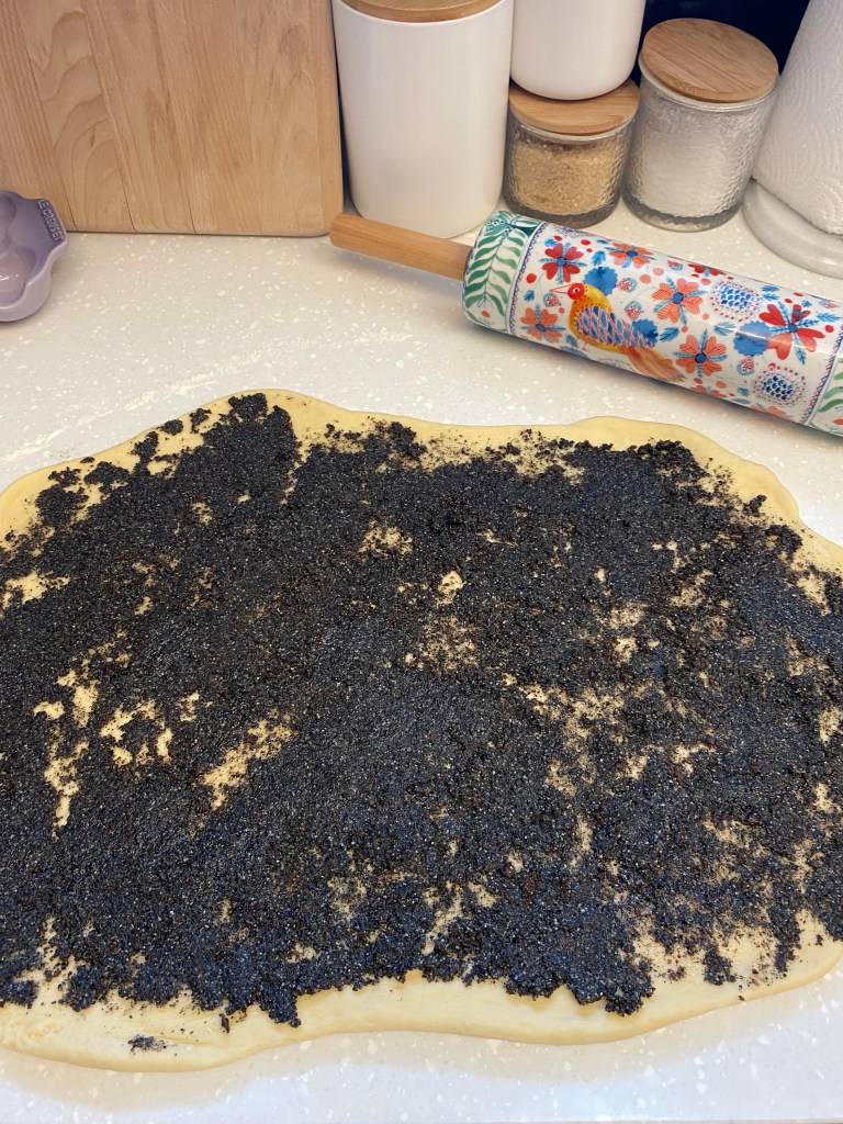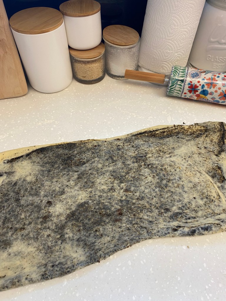 做一條黑芝麻吐司大約需要用到80克的芝麻粉(照片裡可以看到超滿的黑芝麻醬,一層一層的超過癮!)