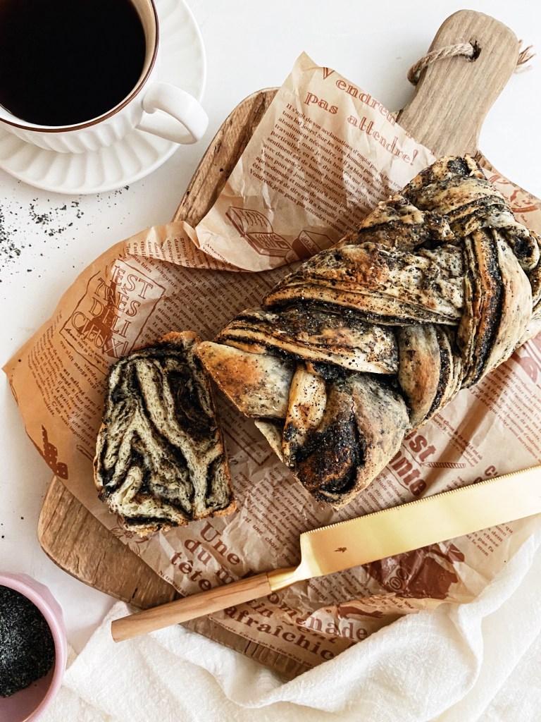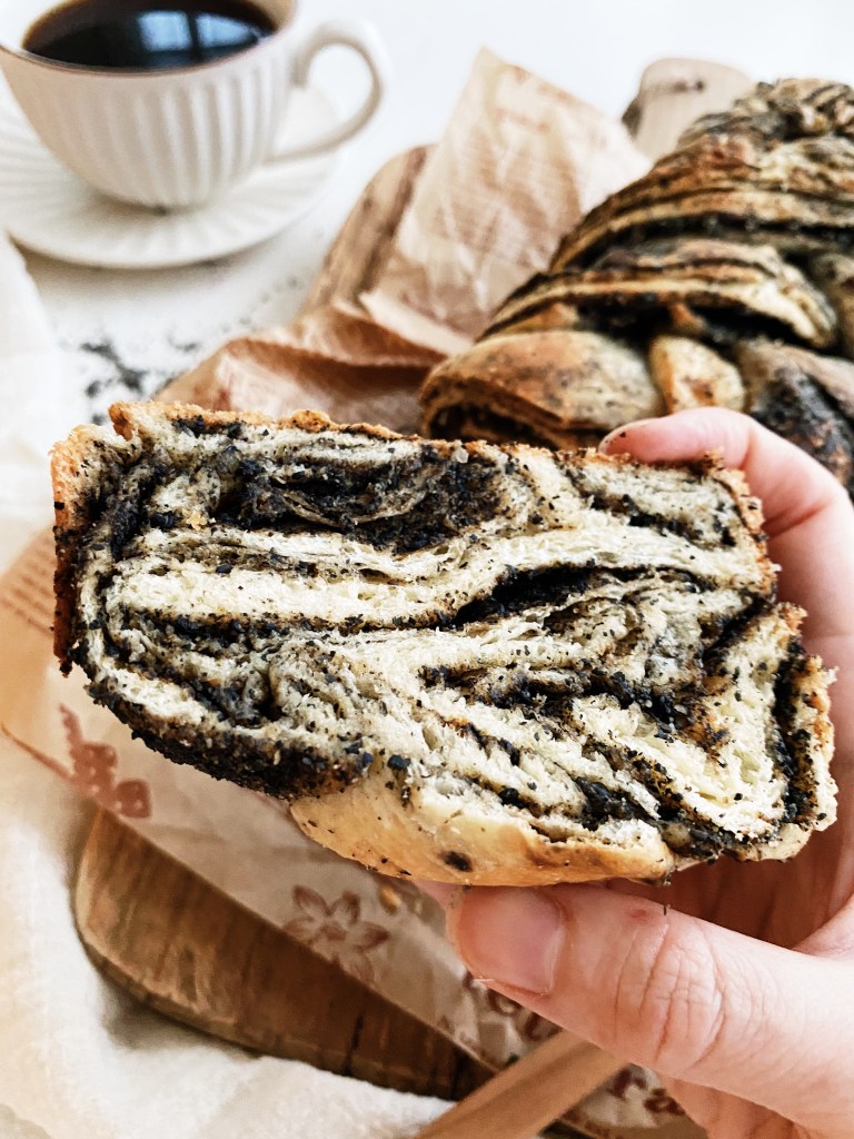 ⭐️我第一次嘗試用德國百靈手持式食物處理機打的麵團,烤出來吐司一樣非常柔軟~結合黑芝麻醬越嚼越香甜,造型也是一個亮點,是用我最喜歡的五股編(去年的聖誕節花圈麵包也是五股編哦),我喜歡黑芝麻內餡因為辮子的編織而分佈的此起彼落,用手撕也好方便,每一口都能吃到內餡超滿足~🍞🖤