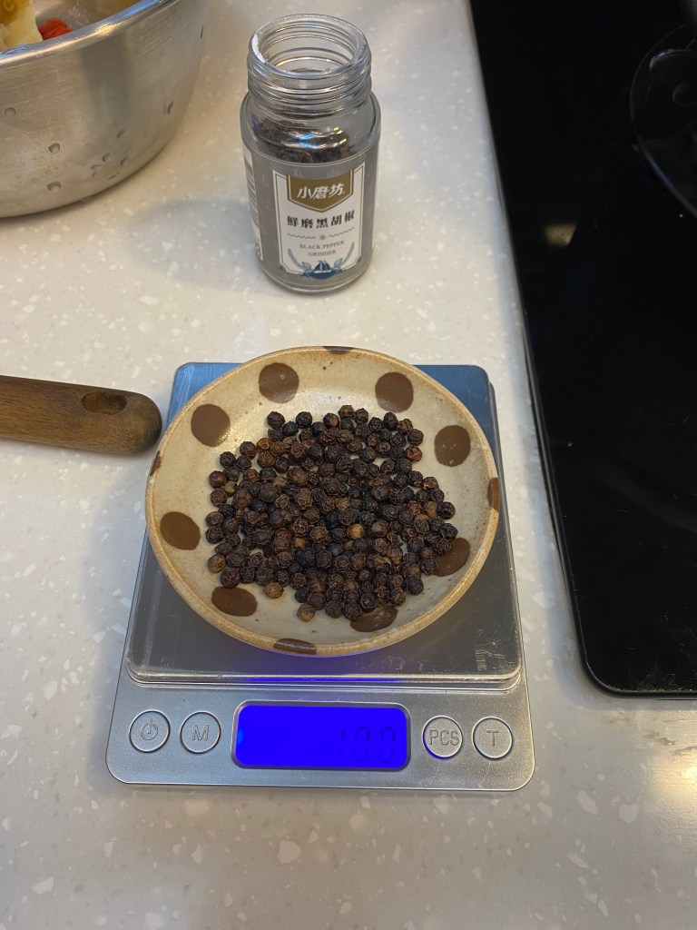 接著備好黑胡椒粒15克(如果有白胡椒粒會更好,但我在超市只有買到黑胡椒粒~)