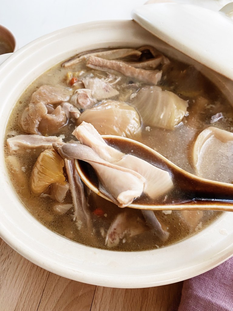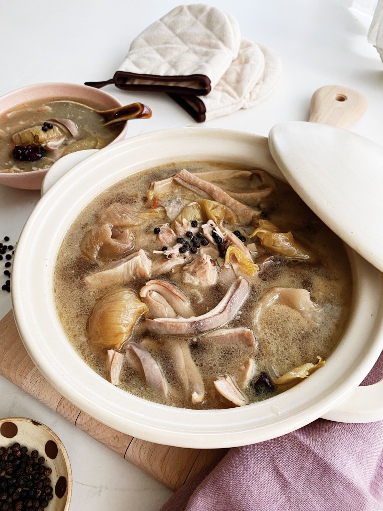 懼怕清內臟的我,還在有我媽先幫我清洗好豬肚了😛,反覆用鹽、麵粉搓洗至少三回才能把腥味去除哦,燉煮2小時多的豬肚湯非常香,因為加了紅棗和枸杞所以顏色沒有這麼白,但湯頭一樣鮮甜香醇,喝上第一口就知道味道對了!