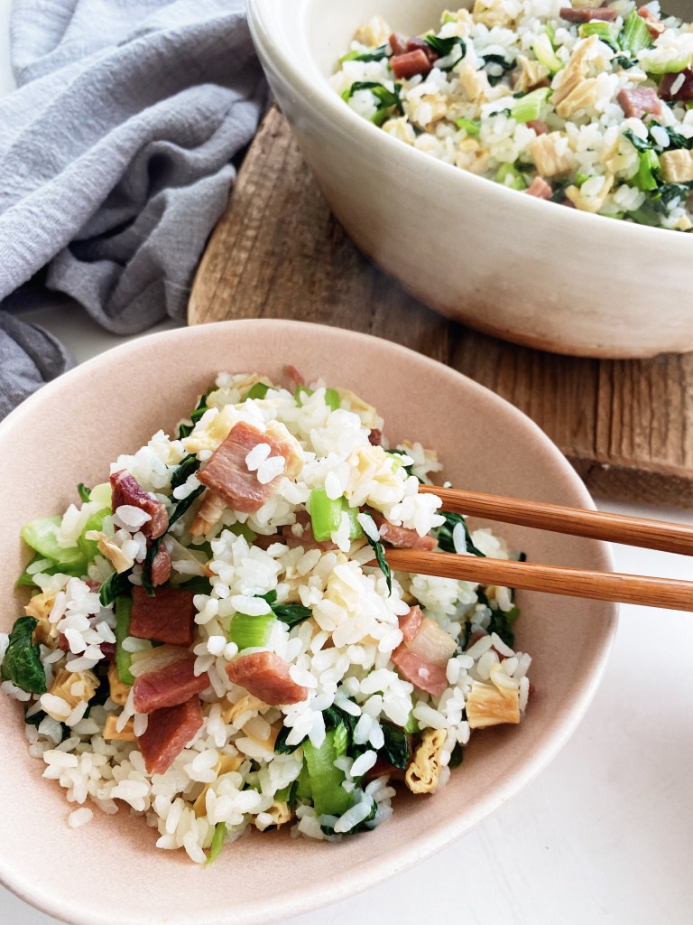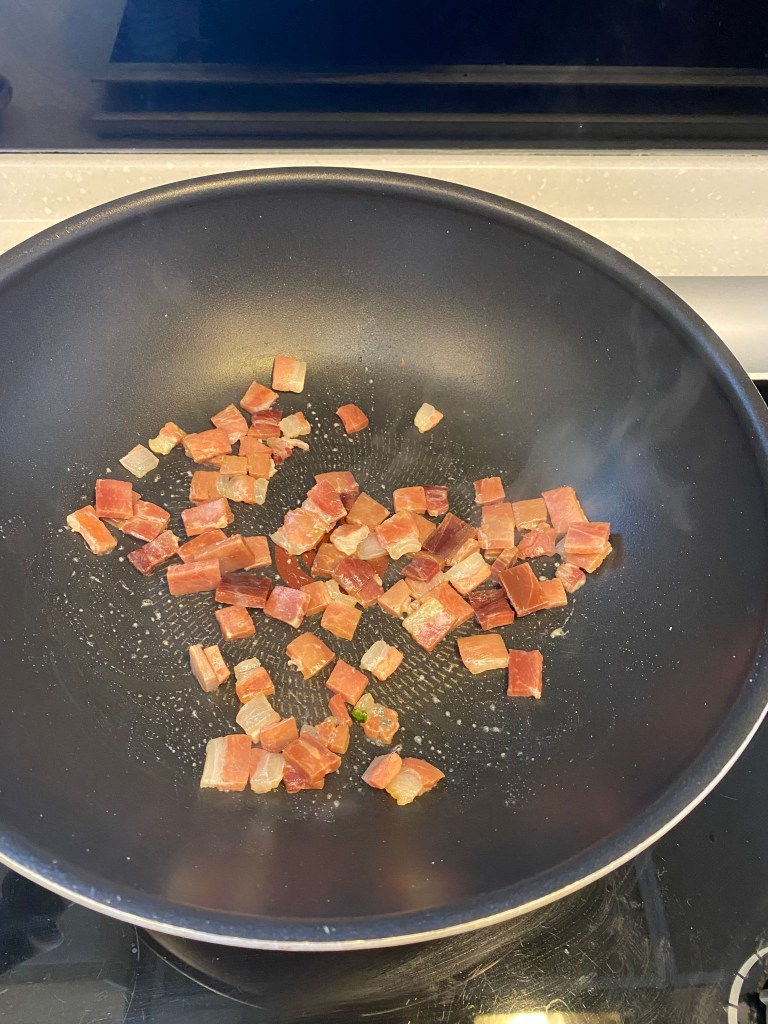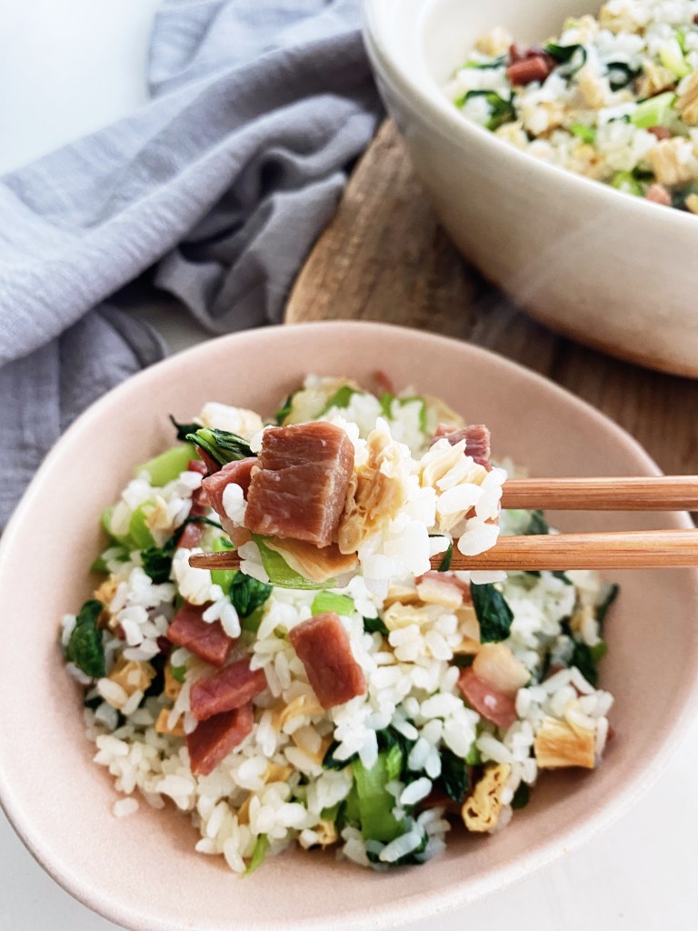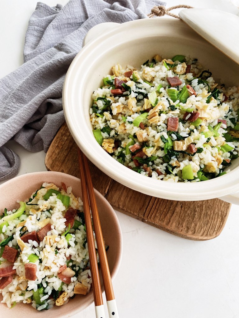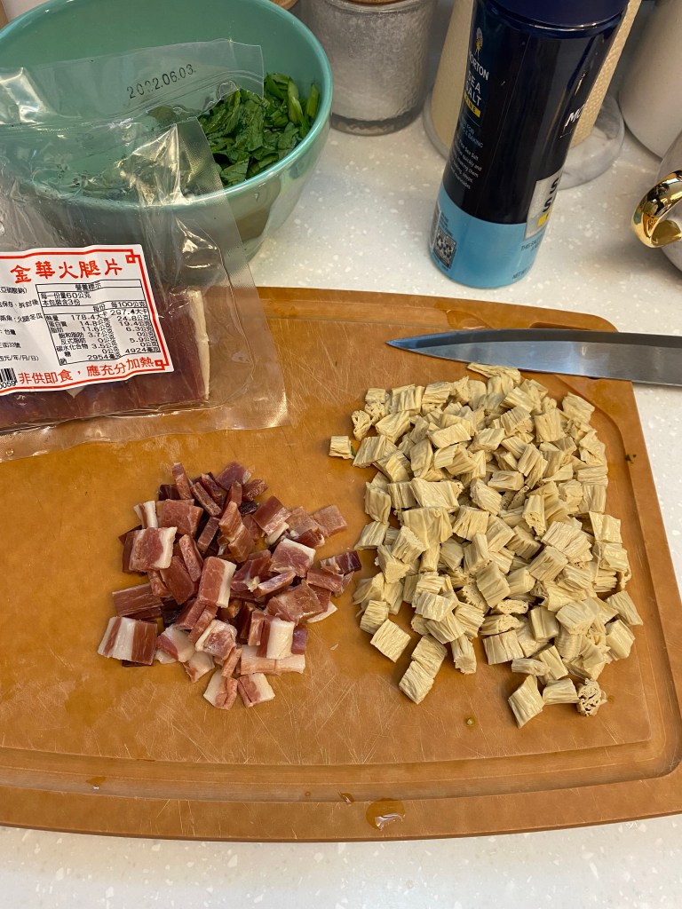 關於金華火腿的料理,我之前在灣區有做過✔️富貴雙方、✔️醃篤鮮,這兩道菜都非常美味、但做工比較細,這次的上海菜飯大概跟麻油雞飯同等級,備料少、步驟簡單,20分鐘內就可以完成開飯!(帶便當也很適合🍱)