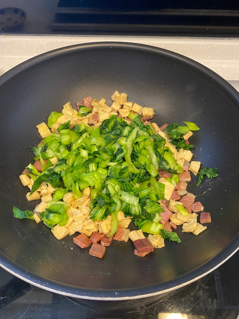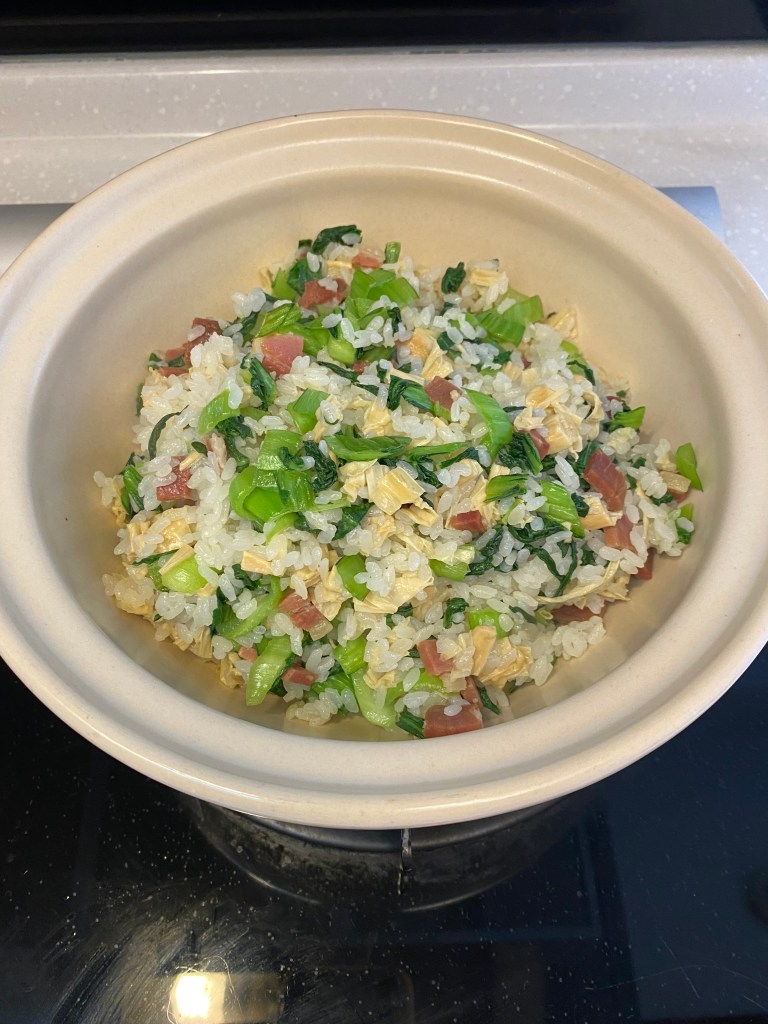 煮出來的米飯帶有金華火腿的鹹香、青江菜也保有清脆口感,我個人是很喜歡金華火腿的,用培根或是火腿做還是少了那股香氣~過年我要生米配高湯再煮兩杯米試試看!
