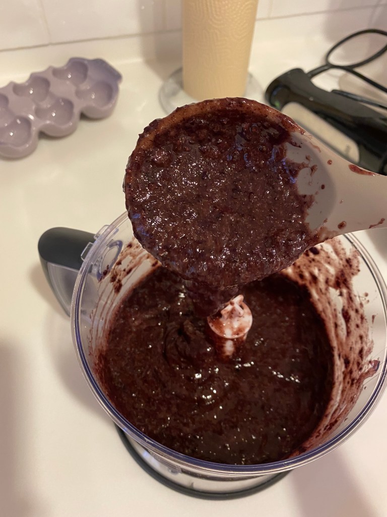 蒸好稍微放涼,再倒入食物調理機中,加入水打成泥狀。
