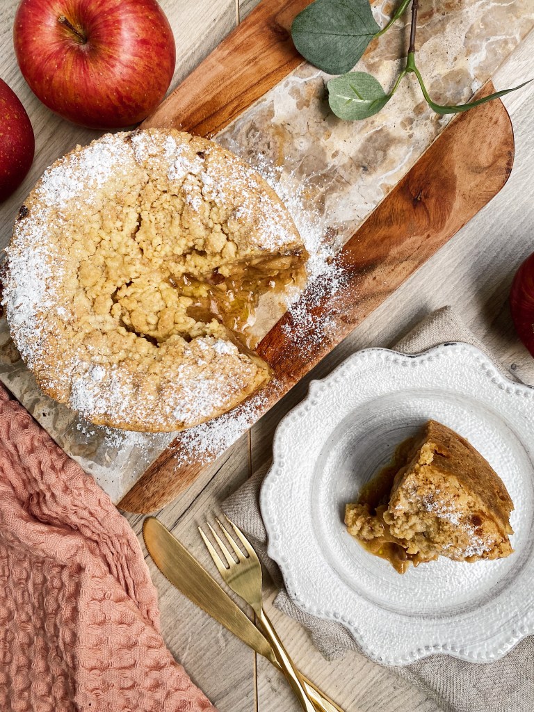新鮮的蘋果香配上核桃奶酥香,自製的蘋果蛋糕完成了!