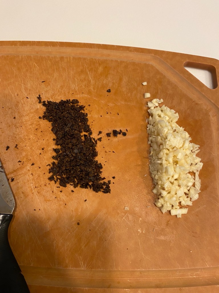 將豆豉切成碎(我是在雜貨店買到的~)、蒜頭也切碎備用。