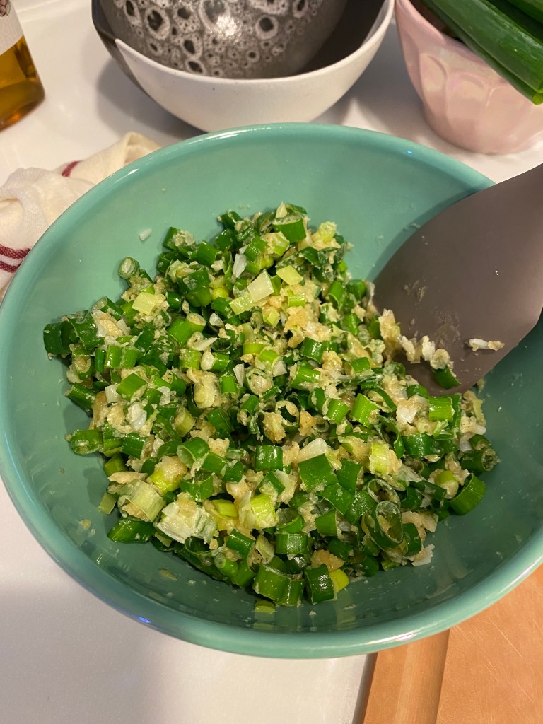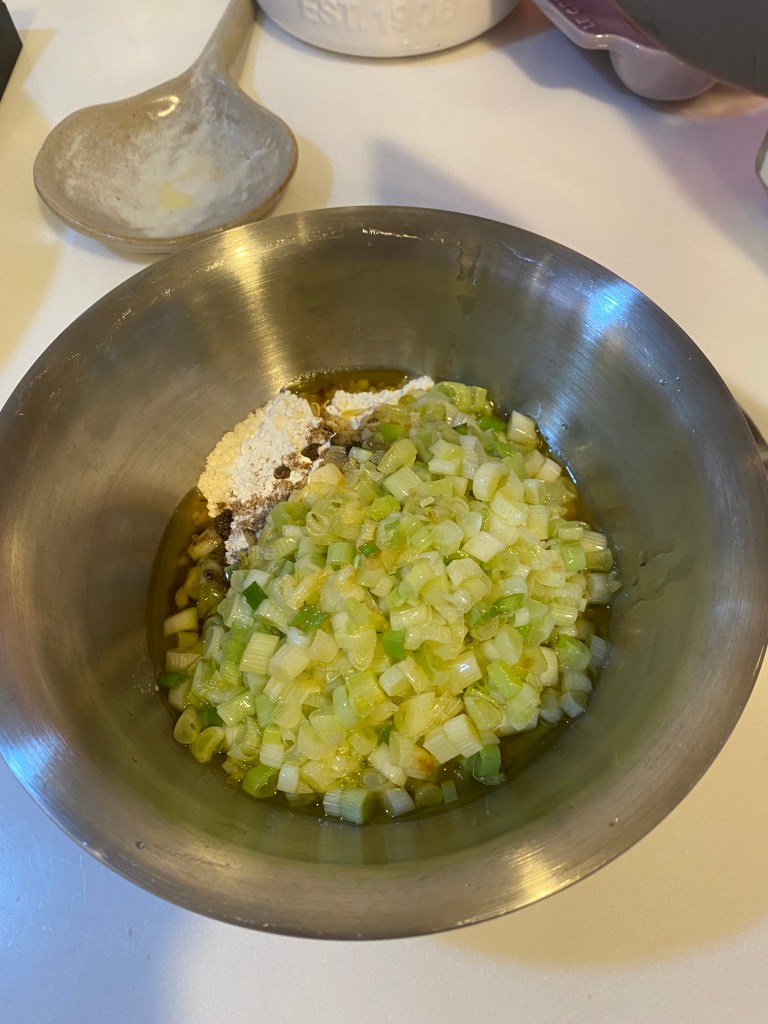 攪拌均勻後再放入蔥綠,一起拌均勻。