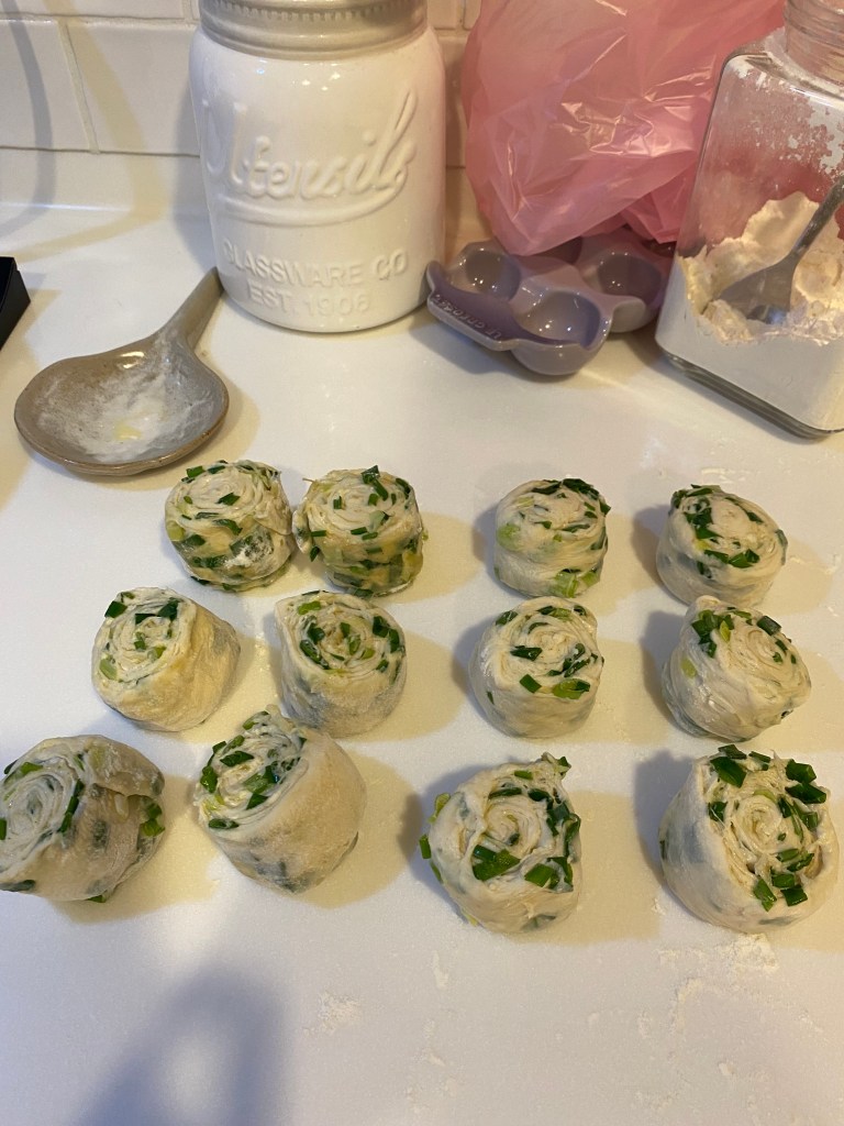 ➔ 一次總共煎了12張,又香又酥、超好吃的蔥油餅完成了!♥ ♥