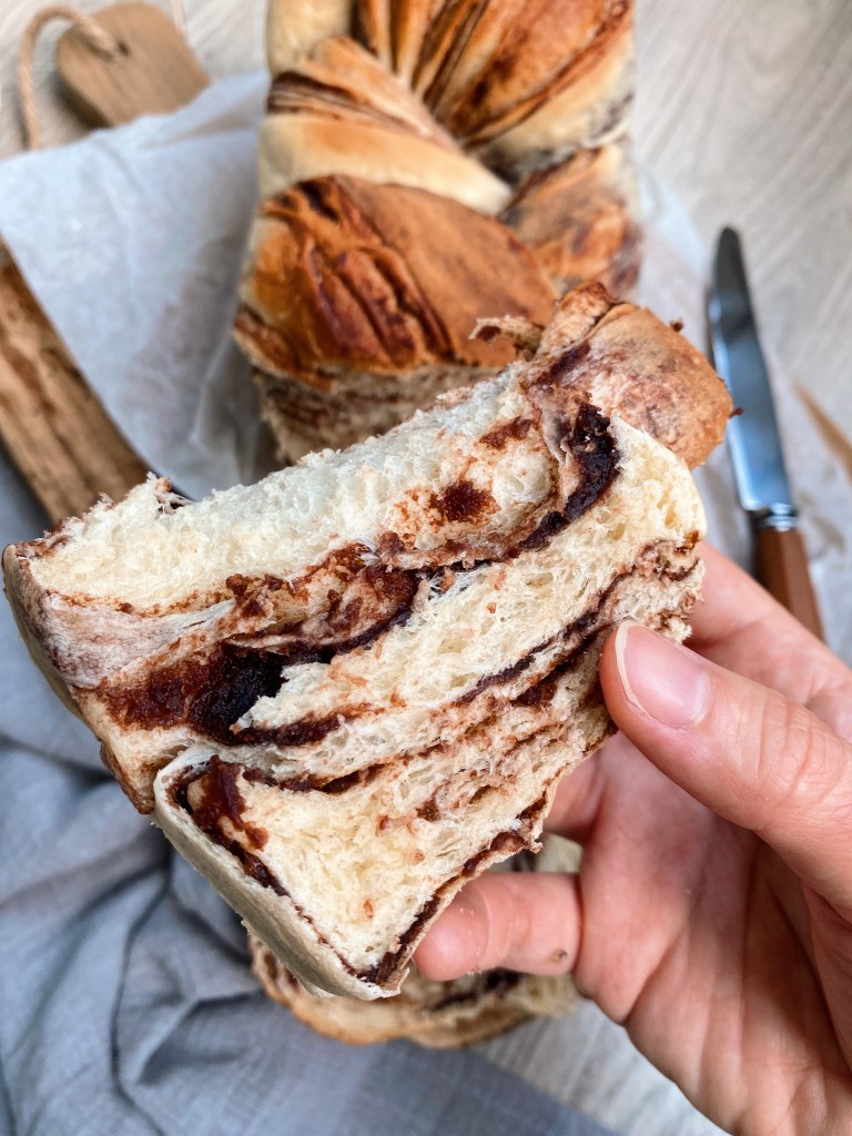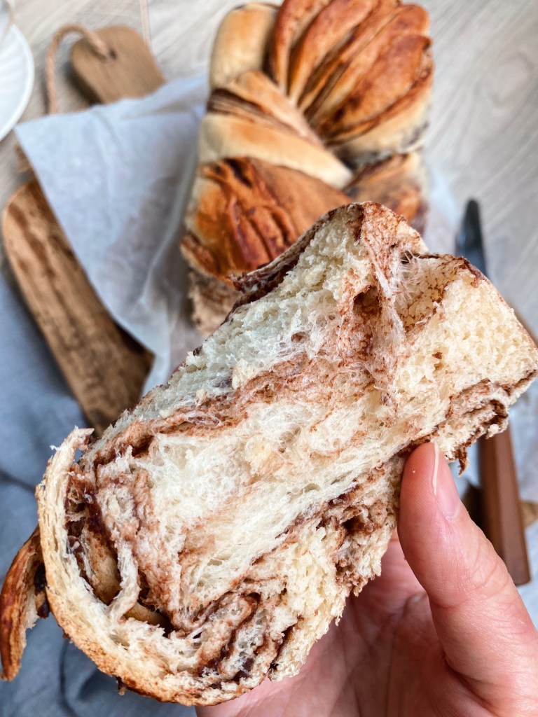 雖然每次都被👦嫌棄烤麵包是大量澱粉的垃圾食物,但我依舊烤的很開心,自己烤出來的麵包就是特別好吃呀(邊打字邊自己撕著巧克力吐司吃),從小去麵包店就很喜歡吃這有紋路的麵包或蛋糕,像是虎皮蛋糕或是今天做的大理石紋路的麵包我都很喜歡!鮮奶吐司配上可可香,讓人就超級有食慾呀~我也有控制糖份,照這個比例做起來不會甜哦,吐司的口感柔軟香甜,剖面切出來不只超美也很好吃,每一口都能吃到巧克力內餡的香甜,甜而不膩!做好後放涼、可以切好一片片當隔天早餐,也可以當下午茶吃,也很推薦給烘焙新手哦!