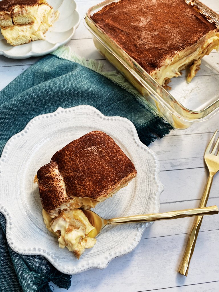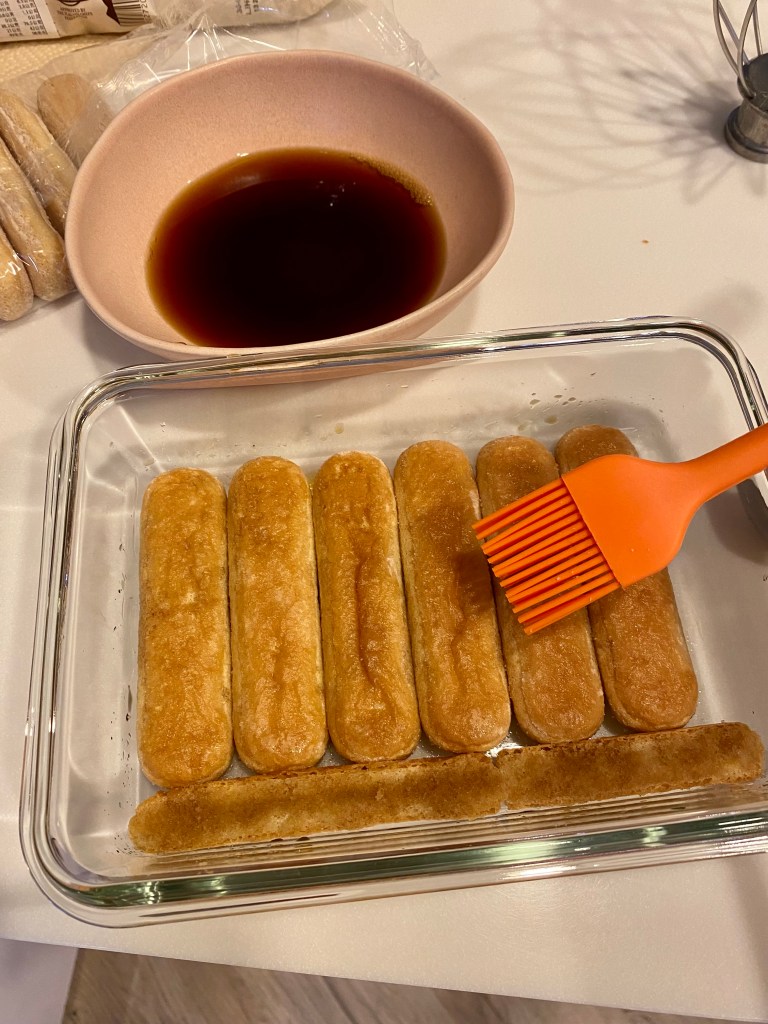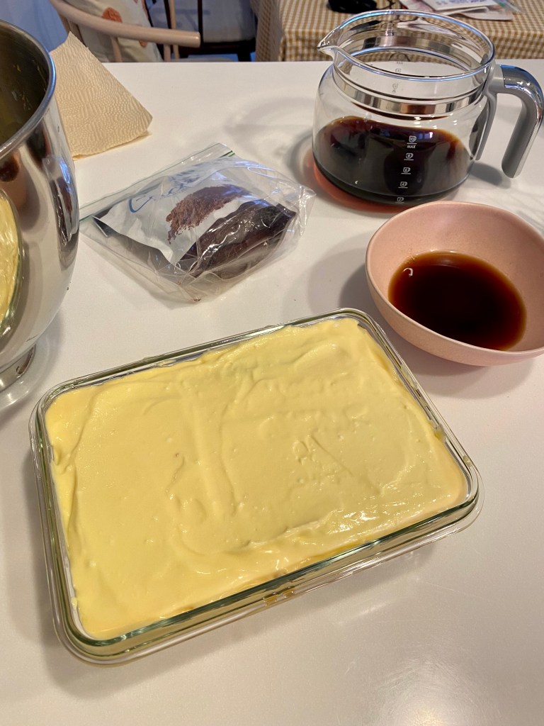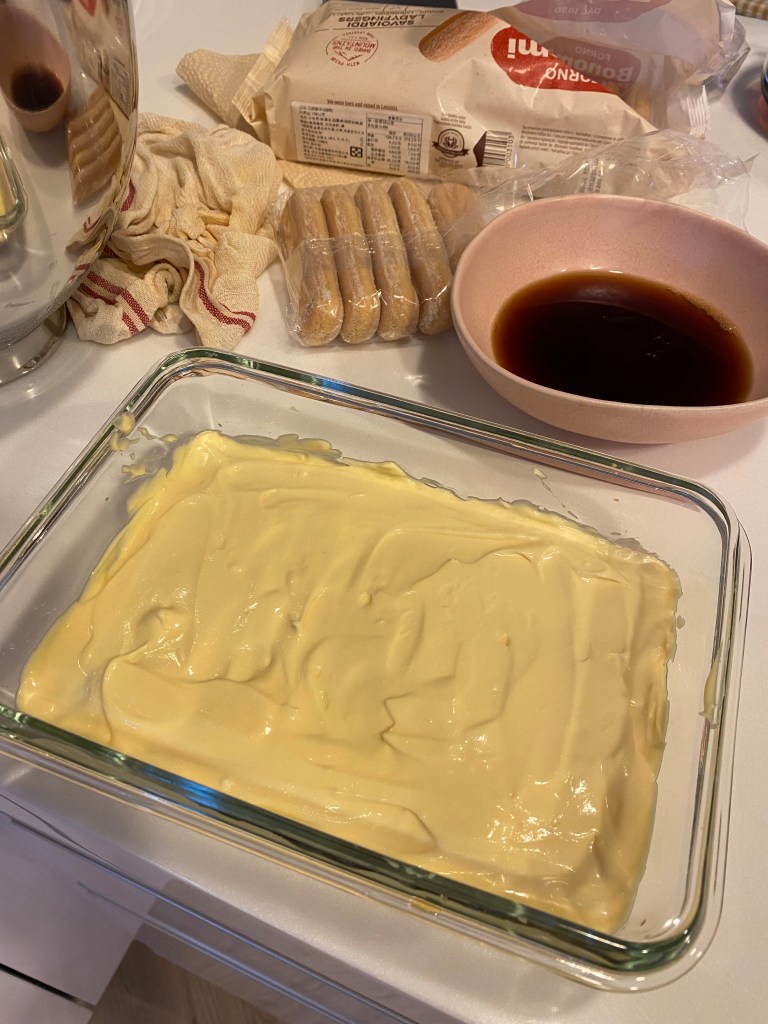 為了迎接小客人來家裡,週末我準備了兩道甜點,一道是🍪玉米片葡萄乾餅乾(之前有po食譜)、另一道則是🇮🇹提拉米蘇!不做不知道,原來提拉米蘇製作過程如此的簡單,幾乎沒有什麼技巧難度,需要準備的食材也很少,也因為我現在還在哺乳👩🍼以及要給小朋友吃,所以手指餅乾我只有沾取少量的黑咖啡而已,是一個無酒精、無鮮奶油或吉利丁的版本,非常推薦給喜歡自己在家做甜點又很懶的朋友,一定要嘗試看看這道提拉米蘇,層層堆疊的馬斯卡彭起司味道濃郁、口感滑順綿密,吃起來超滿足,做起來很有成就感也很適合和朋友們一起享用哦(因為熱量真的很高😆)!