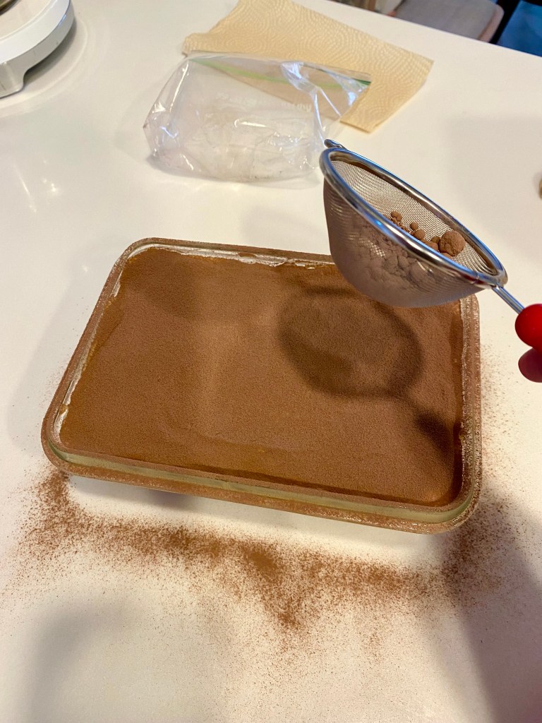 ➔ 要吃的時候從冰箱取出,在表面灑上可可粉,提拉米蘇就完成了