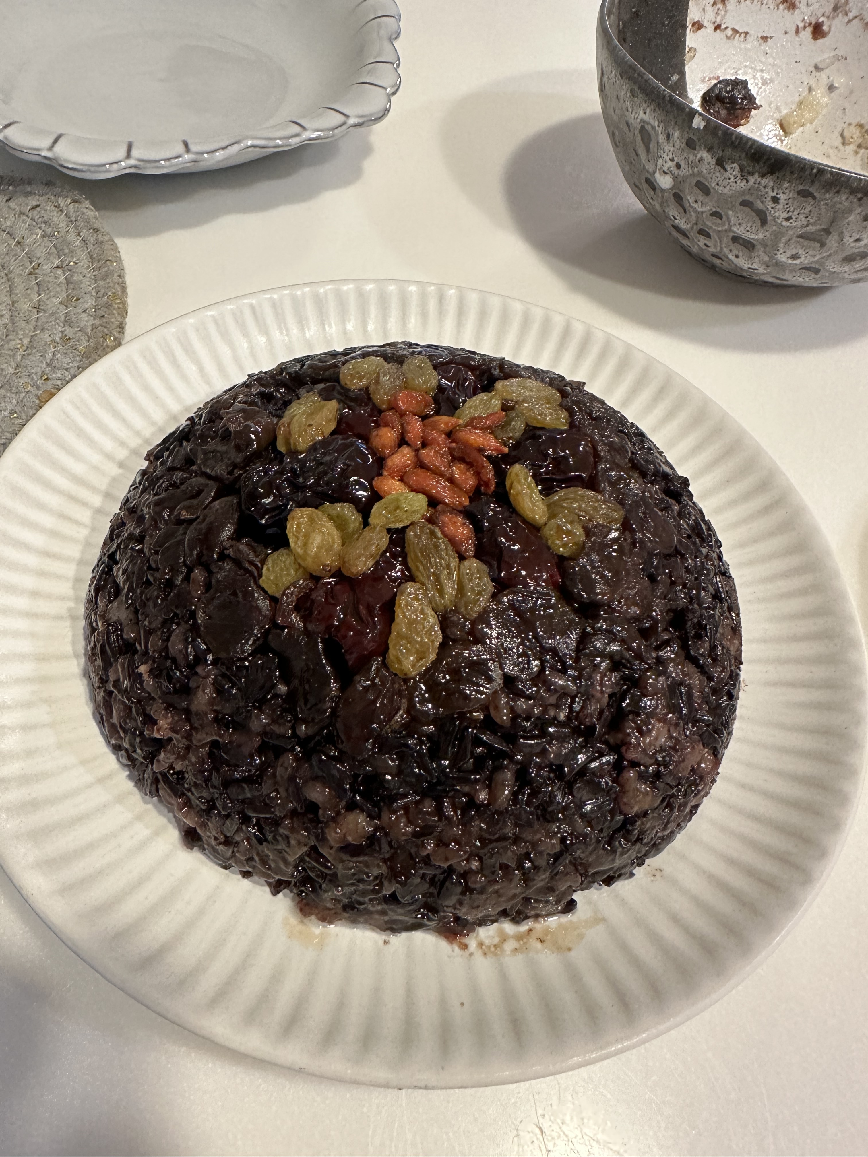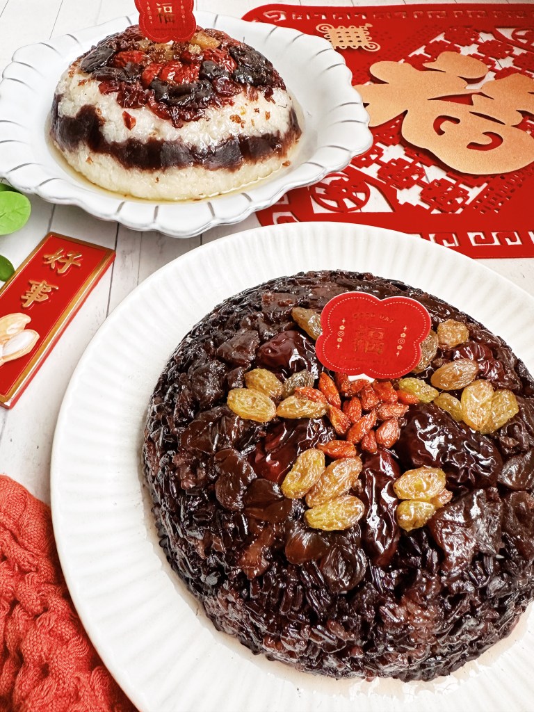 深知已經沒人在觀看我的食譜~但還是堅持要做的八寶飯來了🥁!每年的過年前我都會想做一道甜點來應景一下,八寶飯是道美味、應景、華麗卻又很簡單的年節點心,這次做了兩種口味(感謝我姊的月嫂給我靈感💡),一個是🔸糯米豆沙口味、另一道是🔸紫米芋泥口味,豆沙我直接在烘焙材料行買現成的,芋泥因為做法很簡單,所以就自己做了,兩種口味都非常yummy!不出所料的紫米芋泥大受歡迎,請看圖2~3,就知道紫米蒸的非常綿密軟糯,搭配香濃的芋泥真的超級滿足~